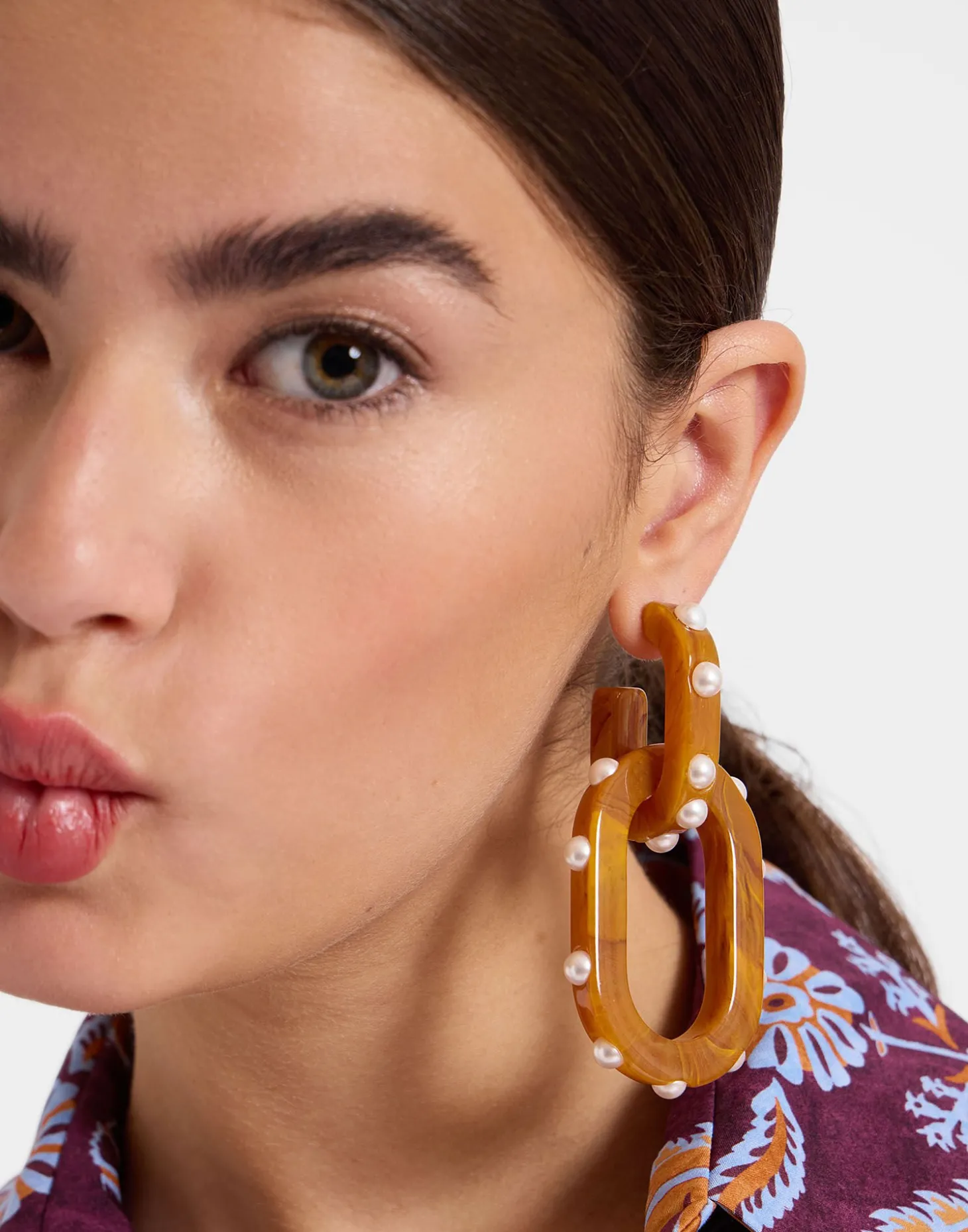 We leant into opulence when crafting these beauties, embellishing these interlocking resin hoops with pearl studs for some Renaissance-era romance. Wear them with a tee and jeans for an elevated day look, or with your new Diva Dress for something a little more dramatic. Don’t throw these around, amore – these delicate delights are precious.