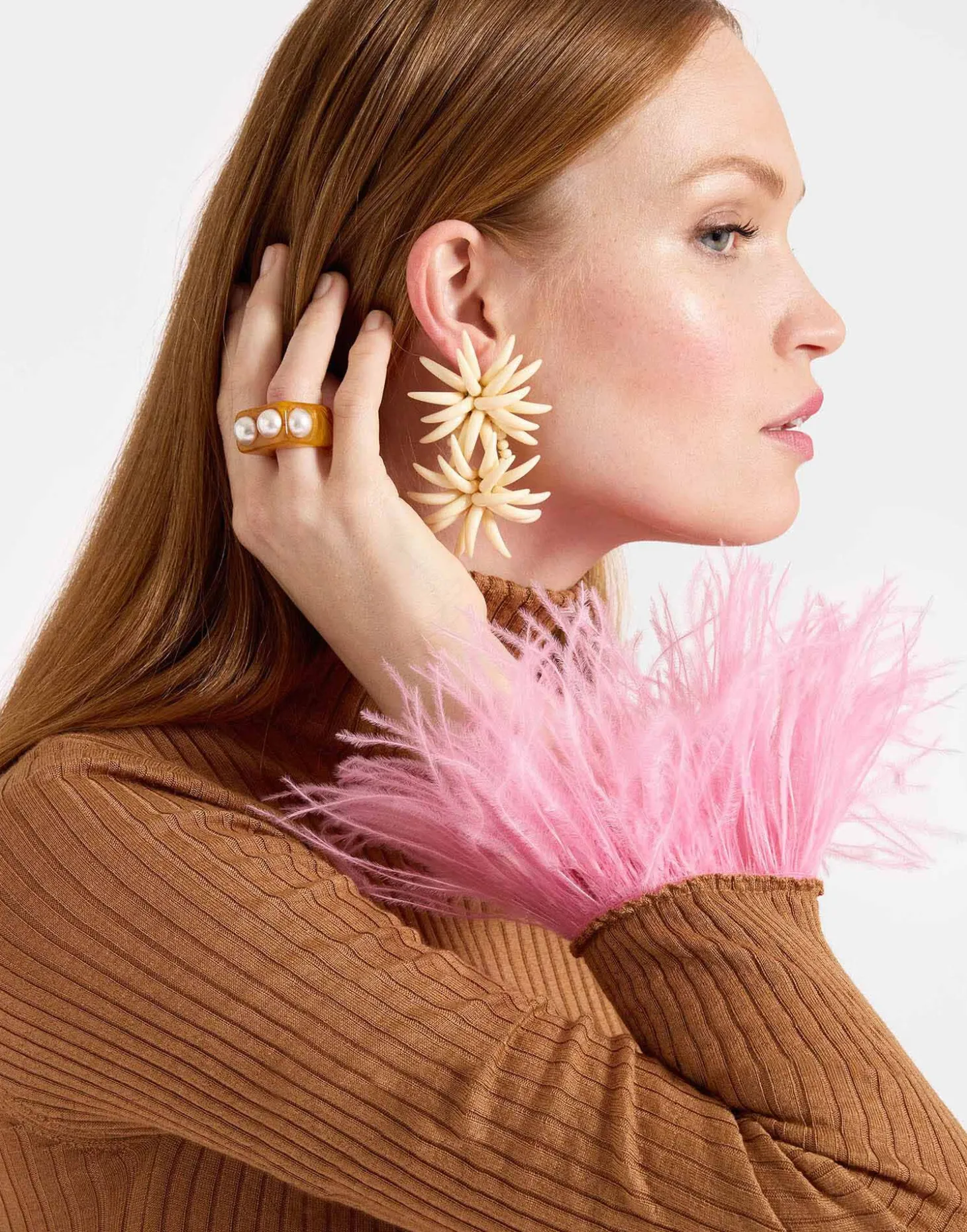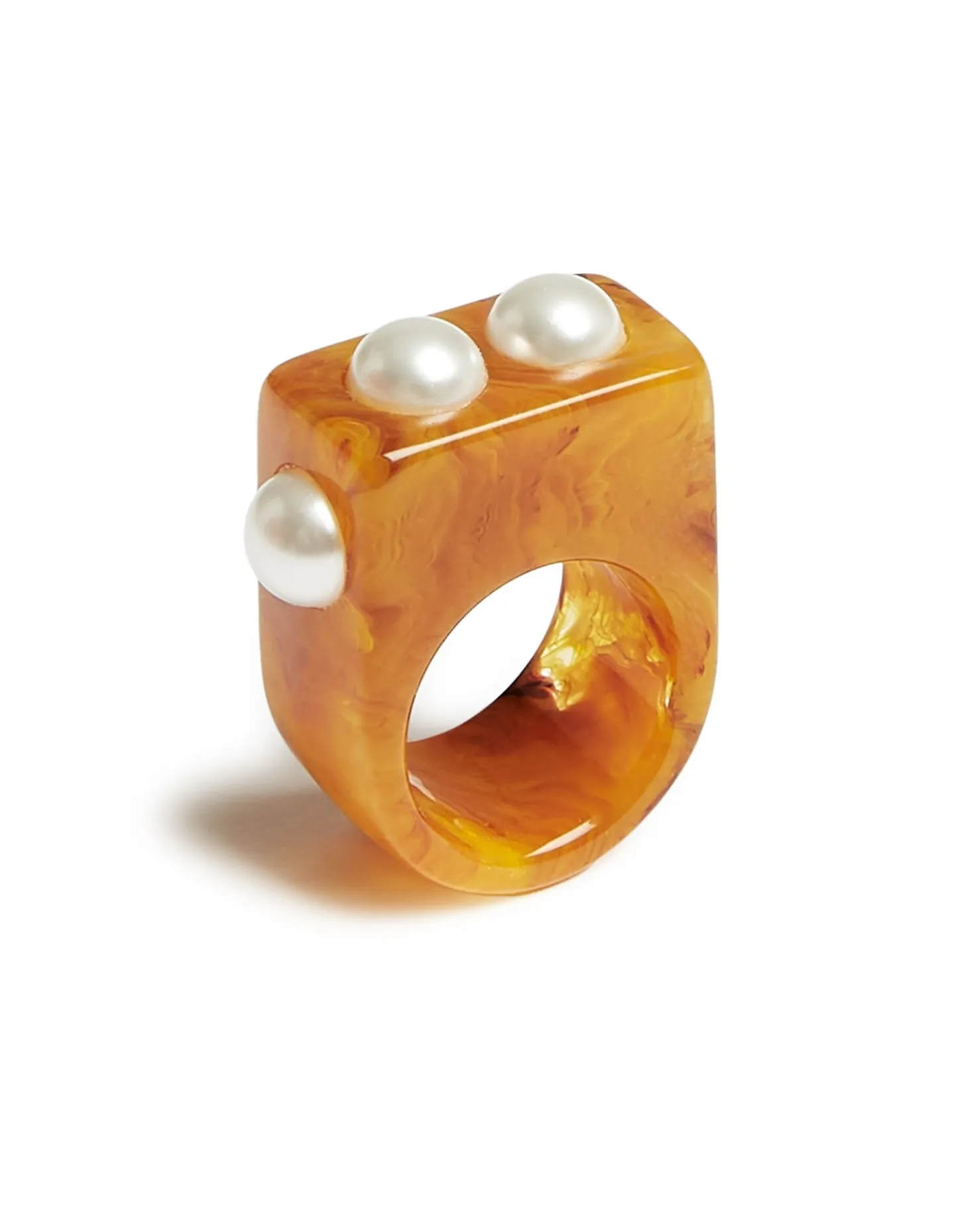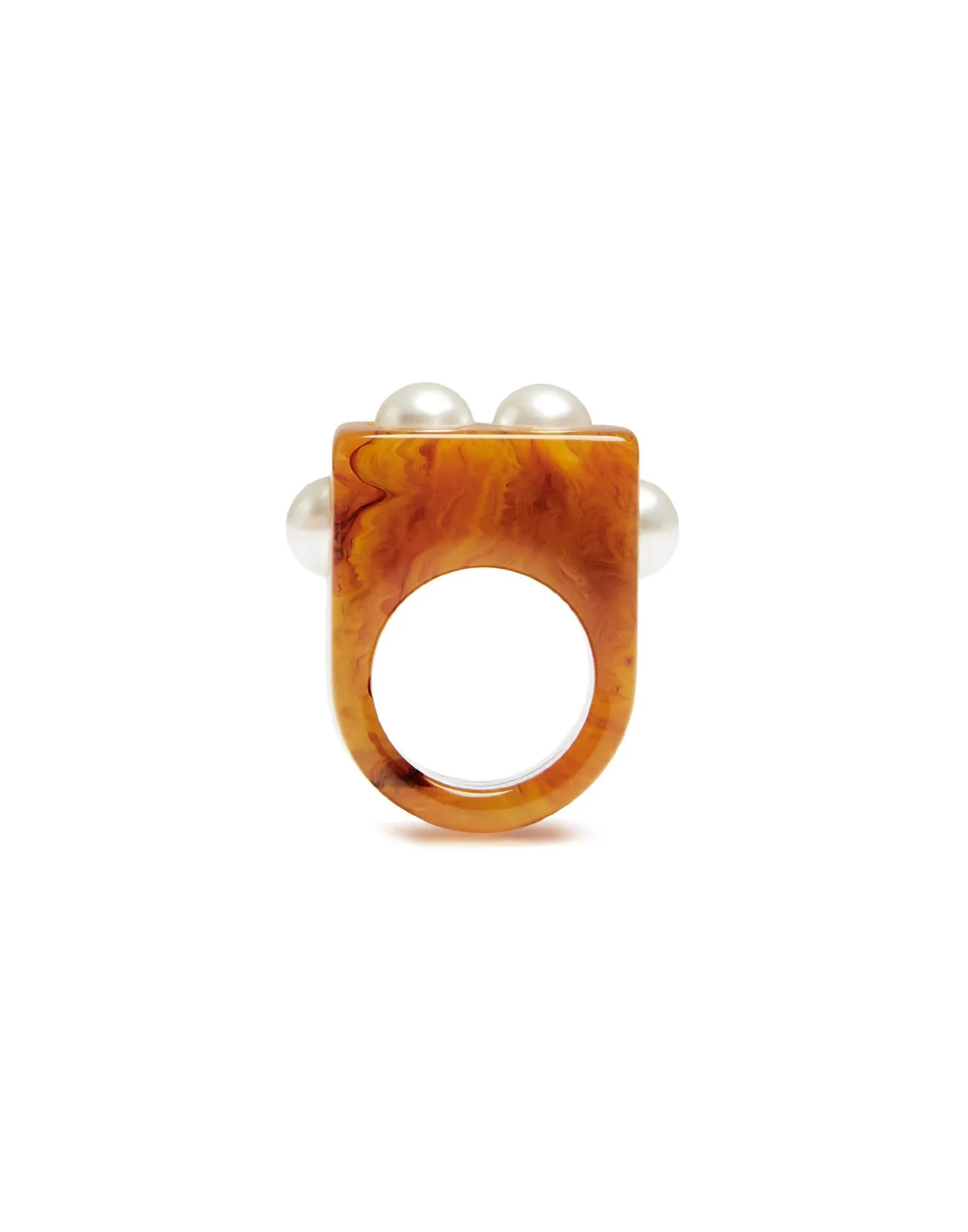 Crafted from solid coloured resin with statement pearls studding it’s edge, the Nefertiti Ring is bold, beautiful and totally badass. Whether you’re rocking it with a monochrome outfit or a print on print party, this design was destined to stand out. Treat her with care, that resin is precious.