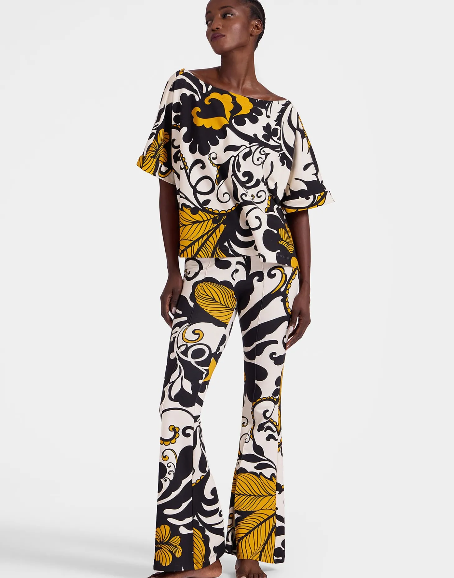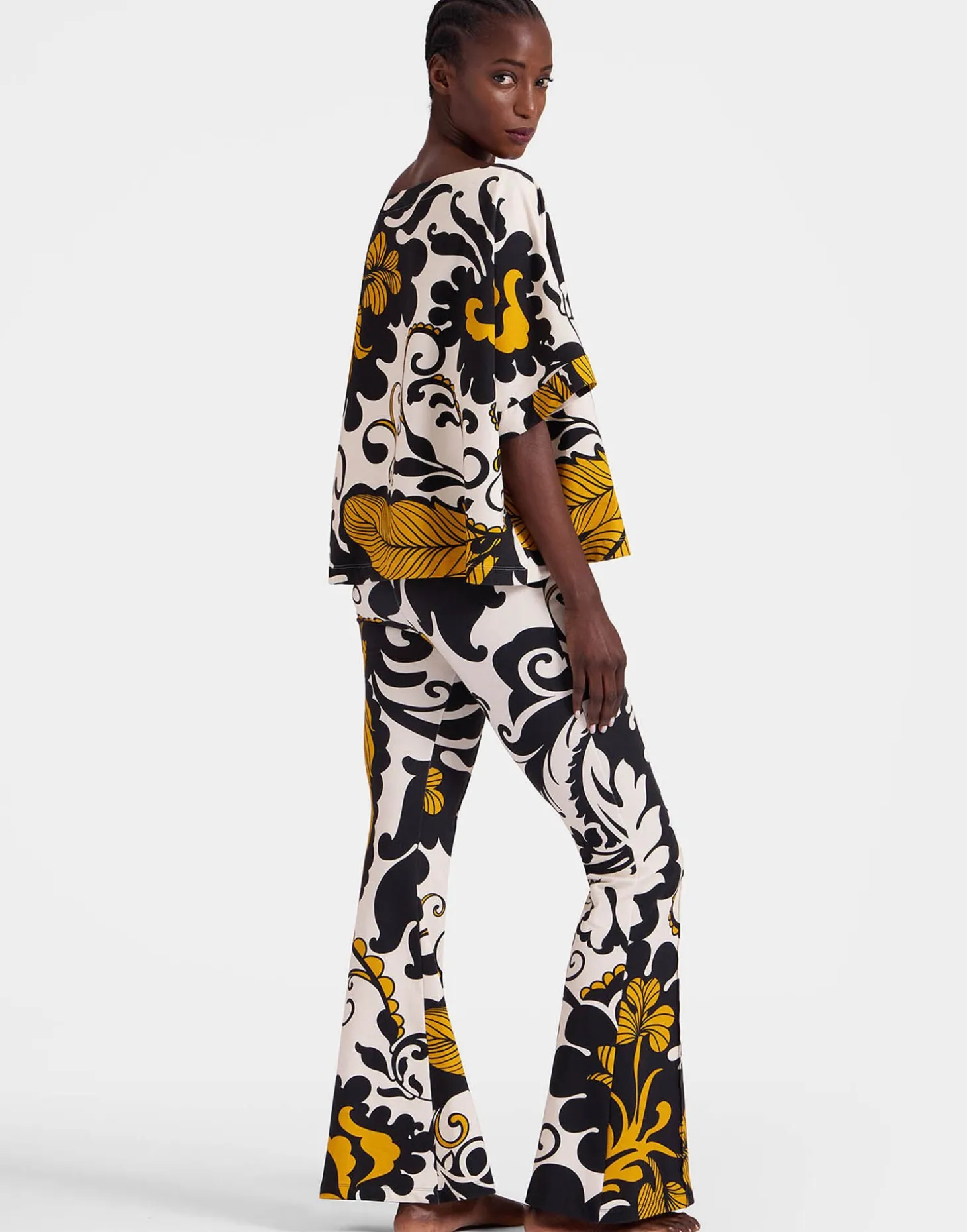 Not just for soaring through the spiritual universe, these Meditation Pants arrive in our vibration-raising prints which ergo makes them great for planes, brunch dates, park picnics – heck, we’re wearing them all day. New in our premium stretch fleece with a textured feel, they fit snugly around the thigh and butt and flare at the knee with a super comfortable waistband that rolls up or down. Don’t miss the meditation poncho to match!