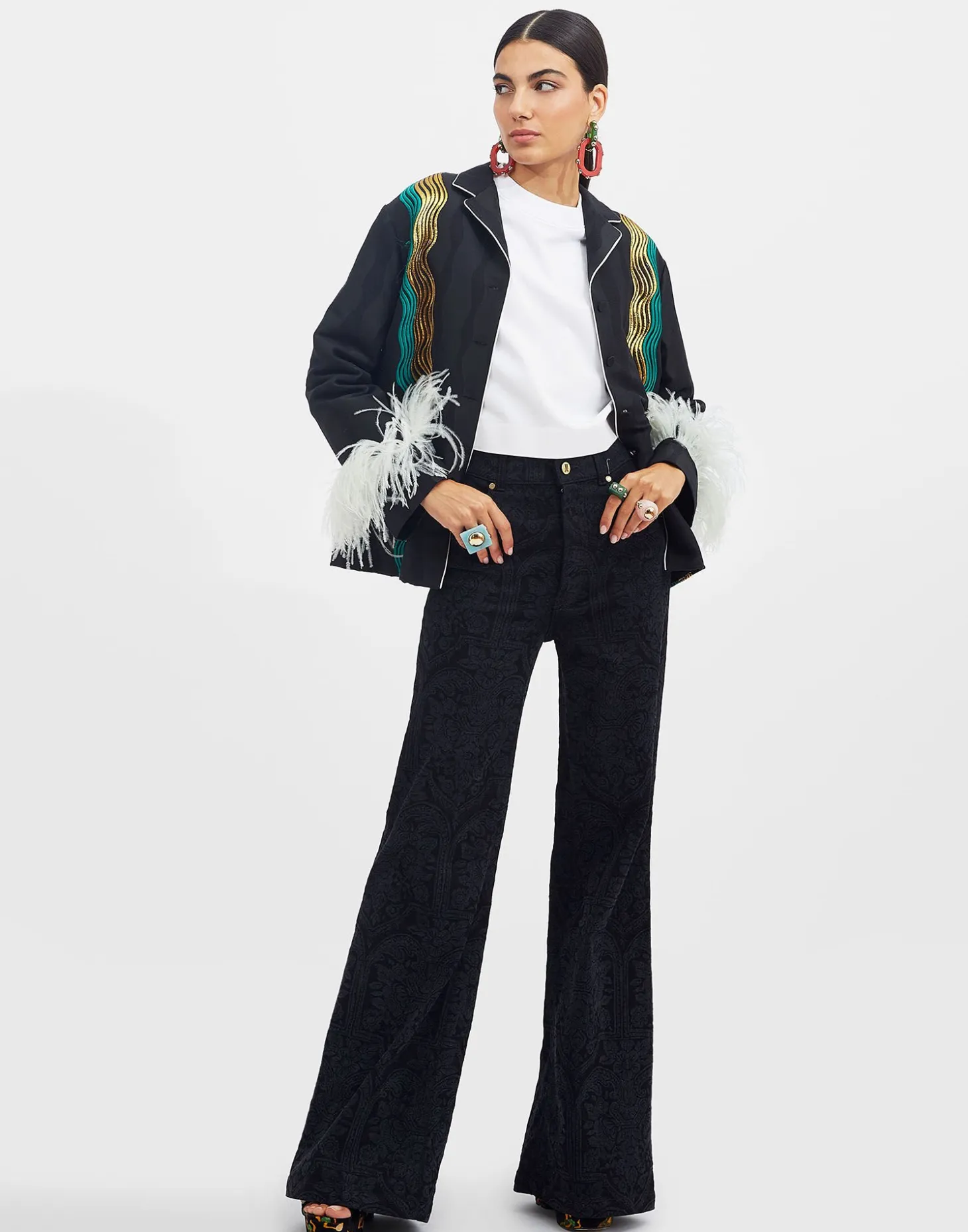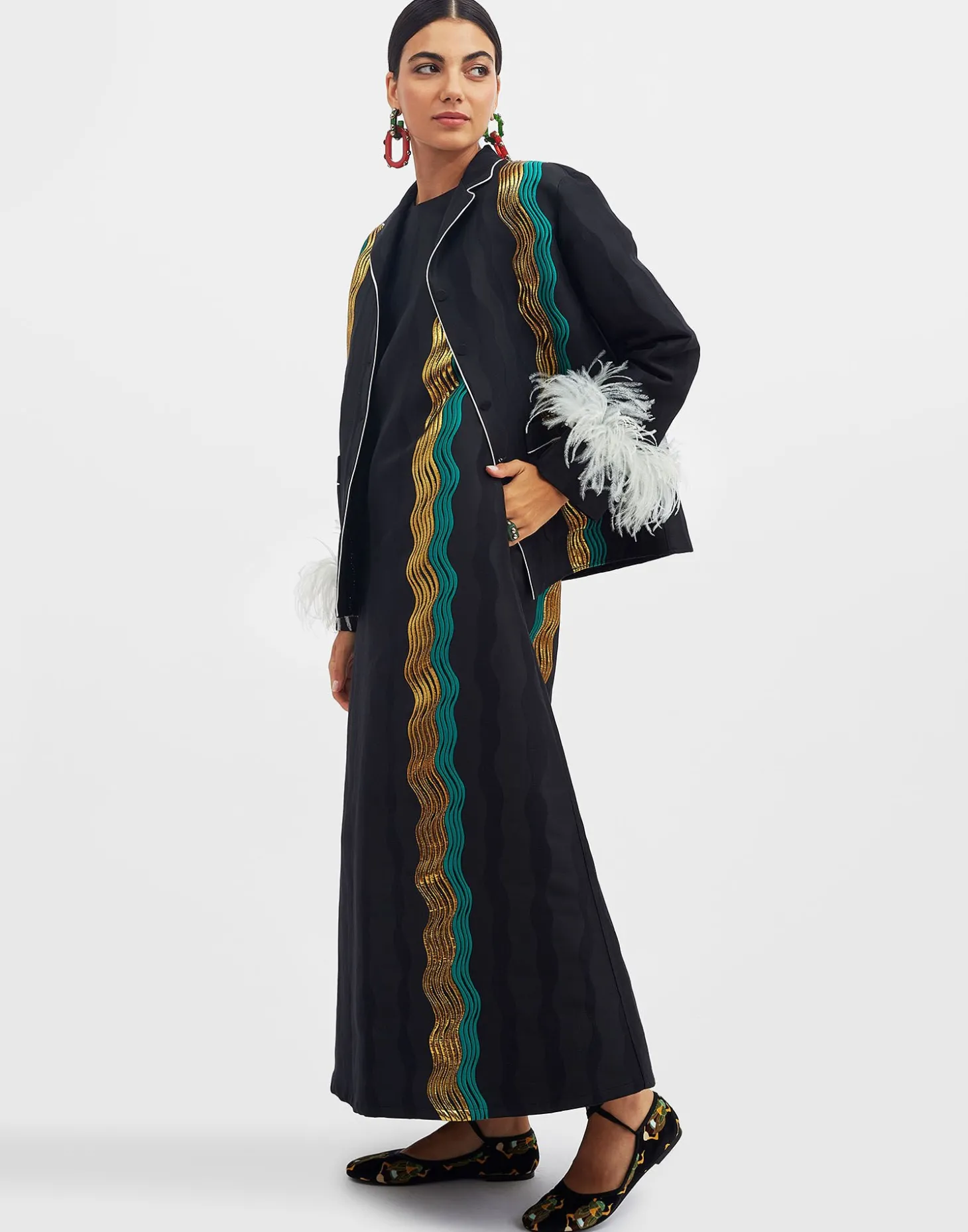 Nile JacketThe Nile Black in Jacquard With Feathers