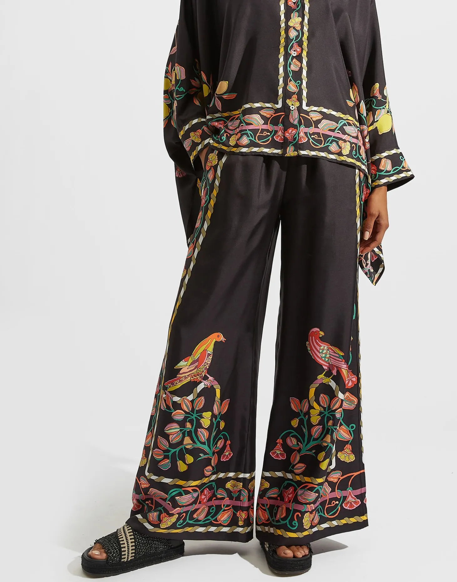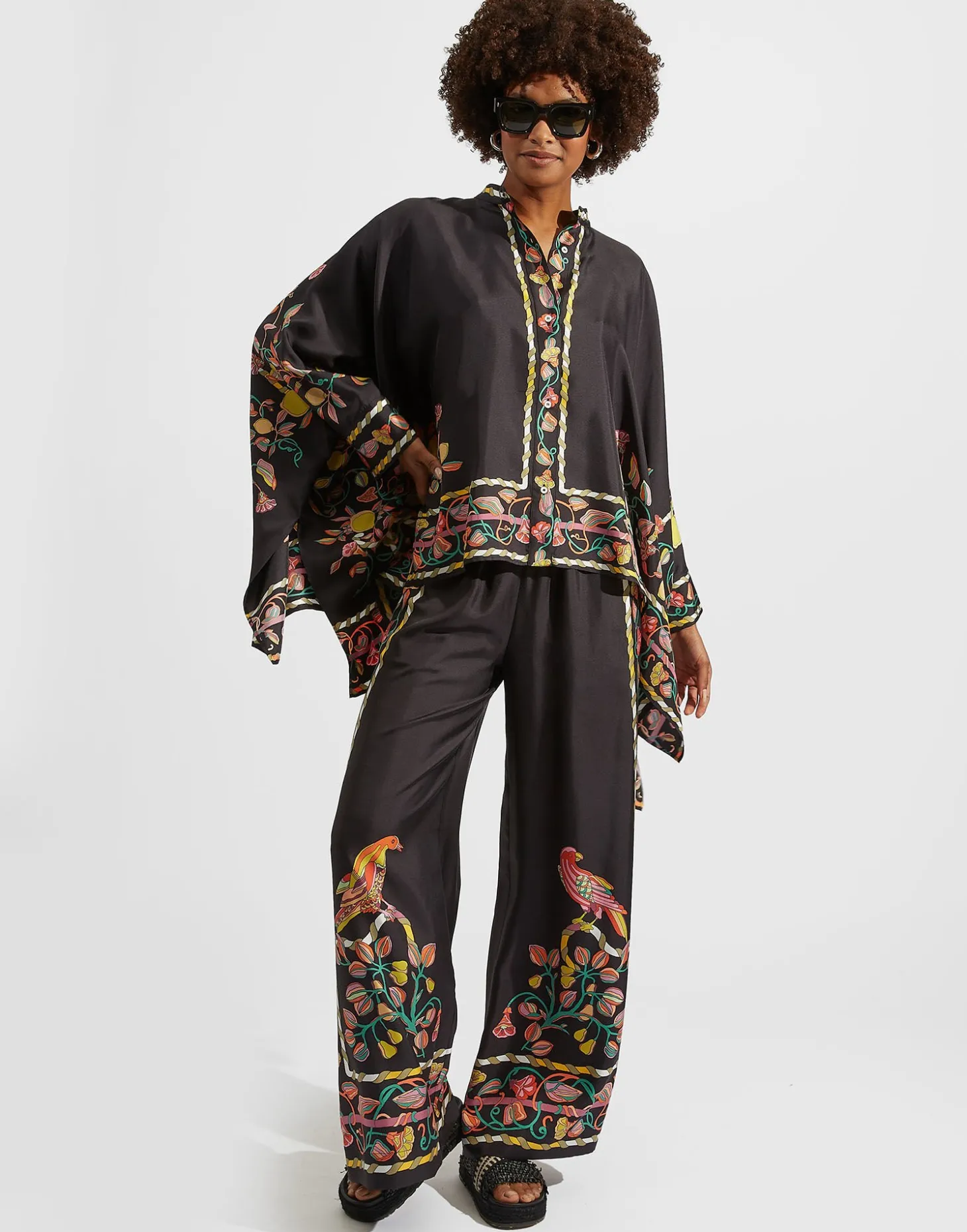 We cannot take credit for inventing the Palazzo Pant silhouette, but we will take credit for making them cool again. These trousers sit on the waist and fall flared, with a wide, breezy fit through the legs – like a skirt, but with the comfort of pants. They’re cut in fluid silk twill from Lake Como and placed with this bellissima print strewn with lucky peppers and lemons inspired by the city of Naples.