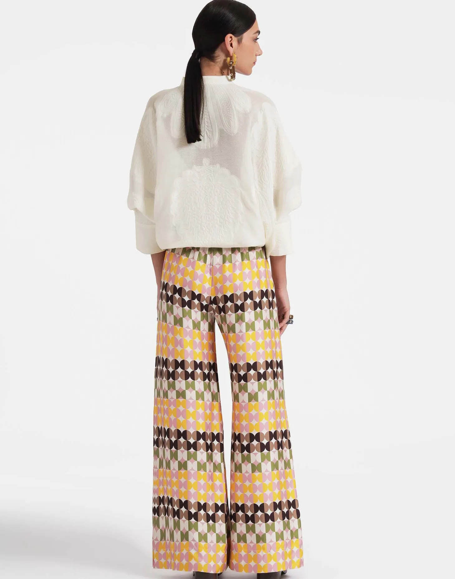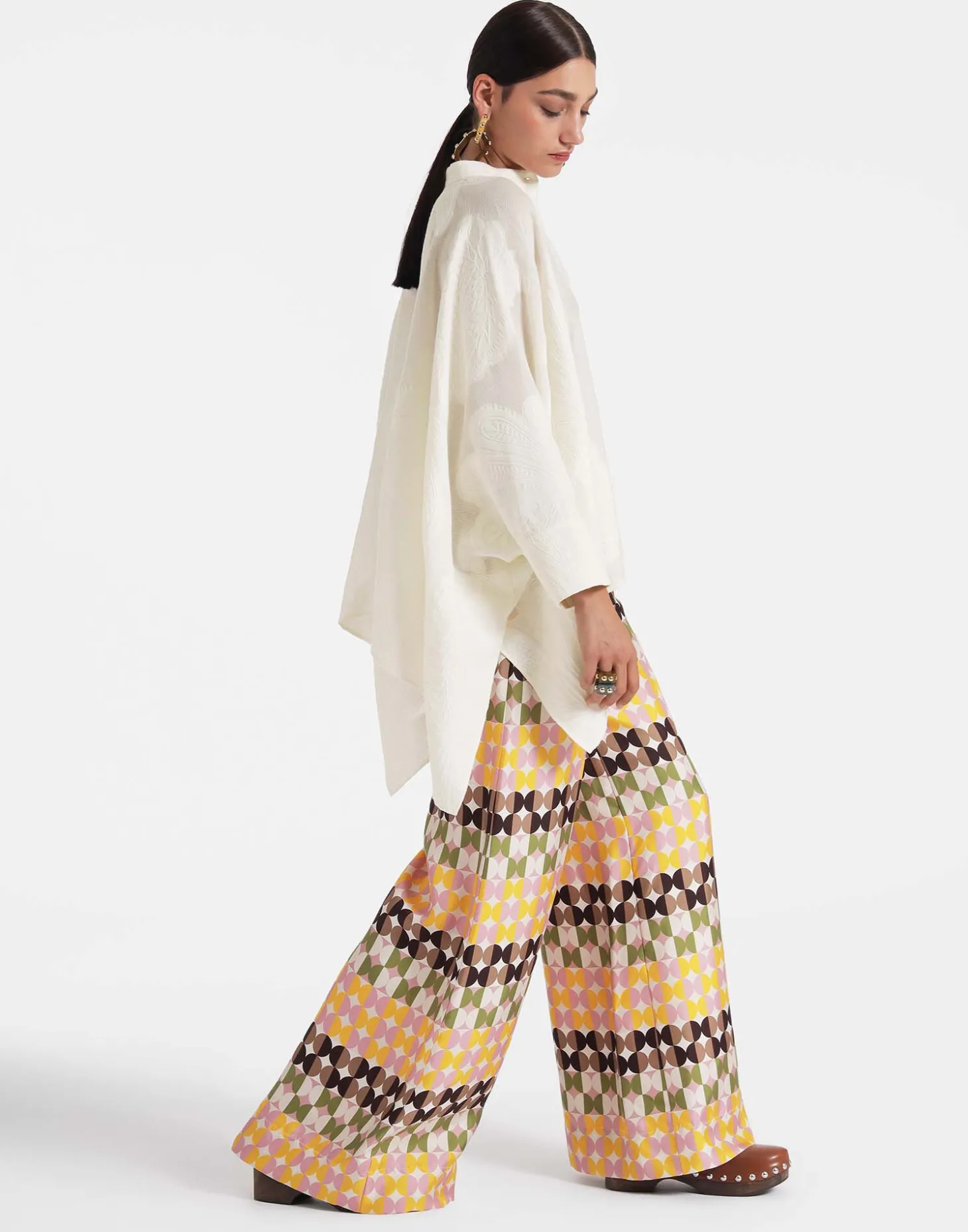 We cannot take credit for inventing the Palazzo Pant silhouette, but we will take credit for making them cool again. These trousers sit on the waist and fall flared, with a wide, breezy fit through the legs – like a skirt, but with the comfort of pants. Arriving in our iconic Mezzaluna print to pep up your summer wardrobe, they’re crafted in glossy silk twill made on the shores of Lake Como. Pair with our silk twill Boy Shirt for the ultimate in laid-back luxe style.