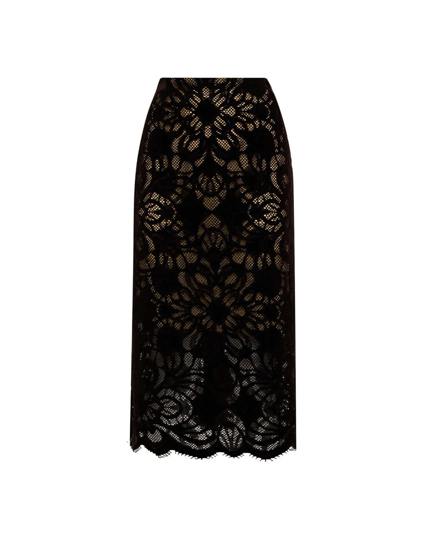 An LDJ icon, our Pencil Skirt returns in this sumptuous Vaudeville Lace to wow your work crowd or pull out for a special RSVP. Cut in a classic column shape, it sits low on the hips with a slit at the back for easy strolling. This beautiful piece will bring joy to a crisp white shirt or style it with the matching La Scala Top for your easiest entrance-making ensemble yet.