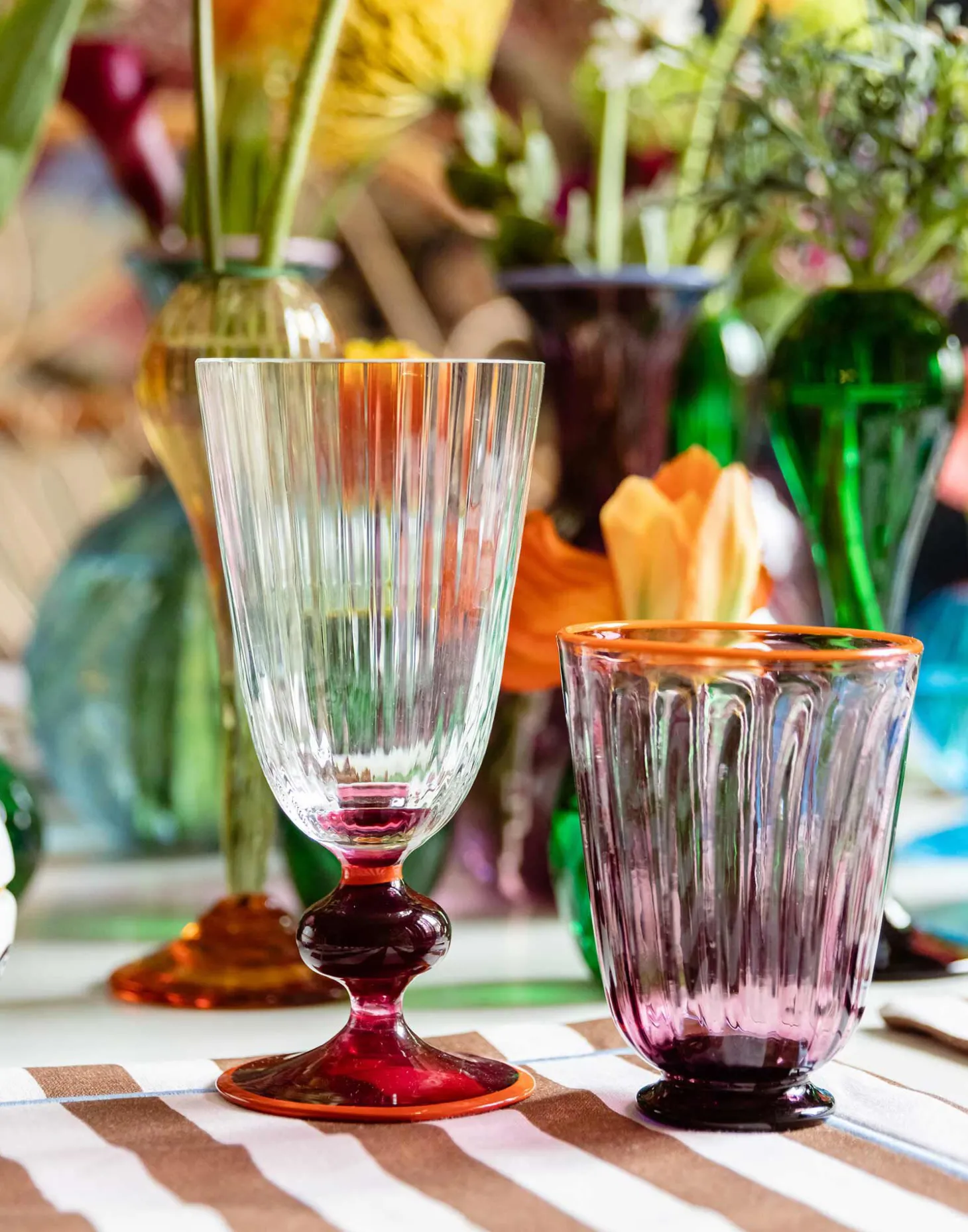 Wine lovers, you’re welcome. We’ve crafted the perfect (yes, we said it) high-vibe vessel with our historic Venetian glassblowing partners with a new, clear flute to let that beautiful Barolo or summer Rosé shine through. A statement on its own, it has an extra impact set aside our Rainbow Water Glasses, ideal for those occasions on which you want just a little pop of powerful colour.
