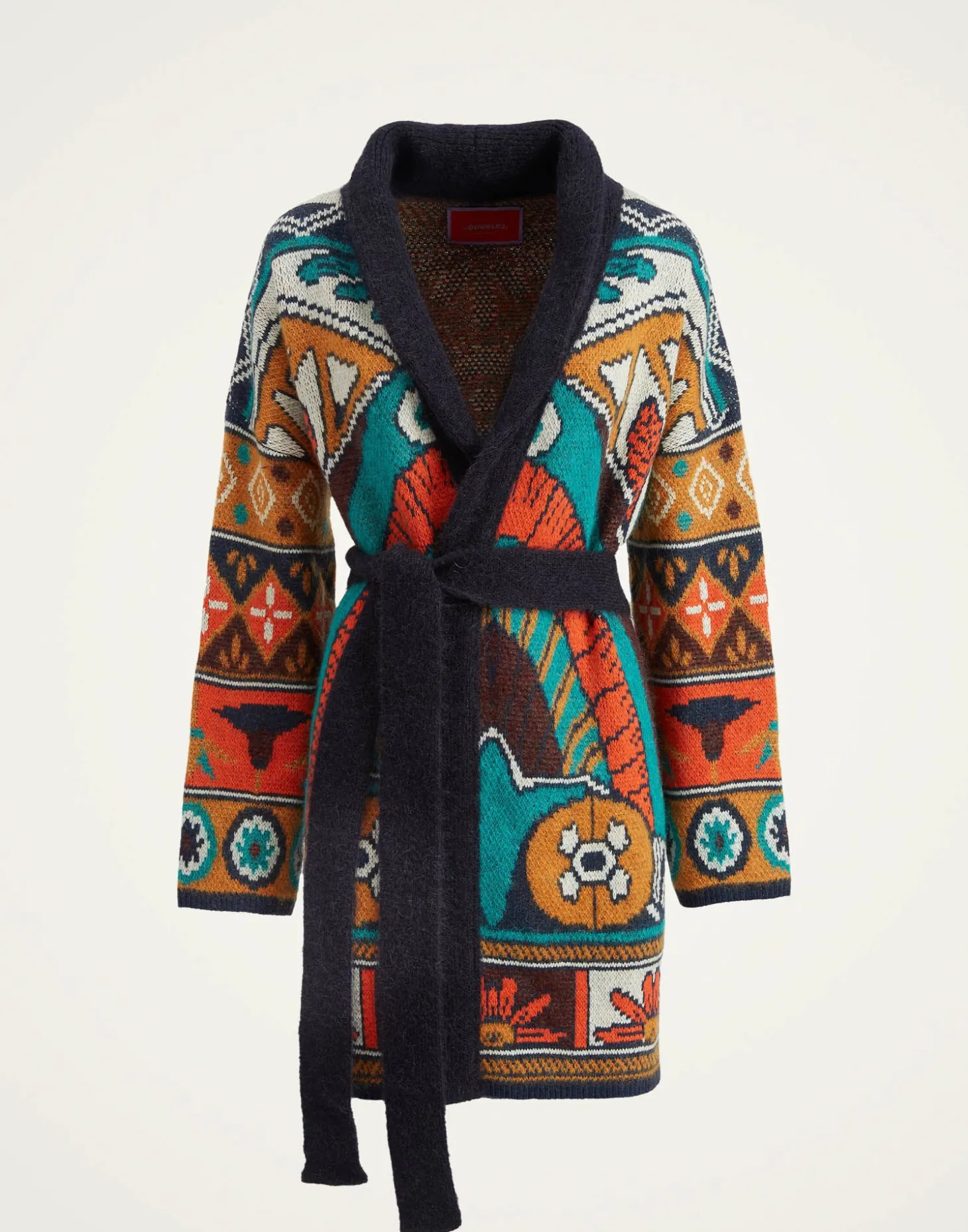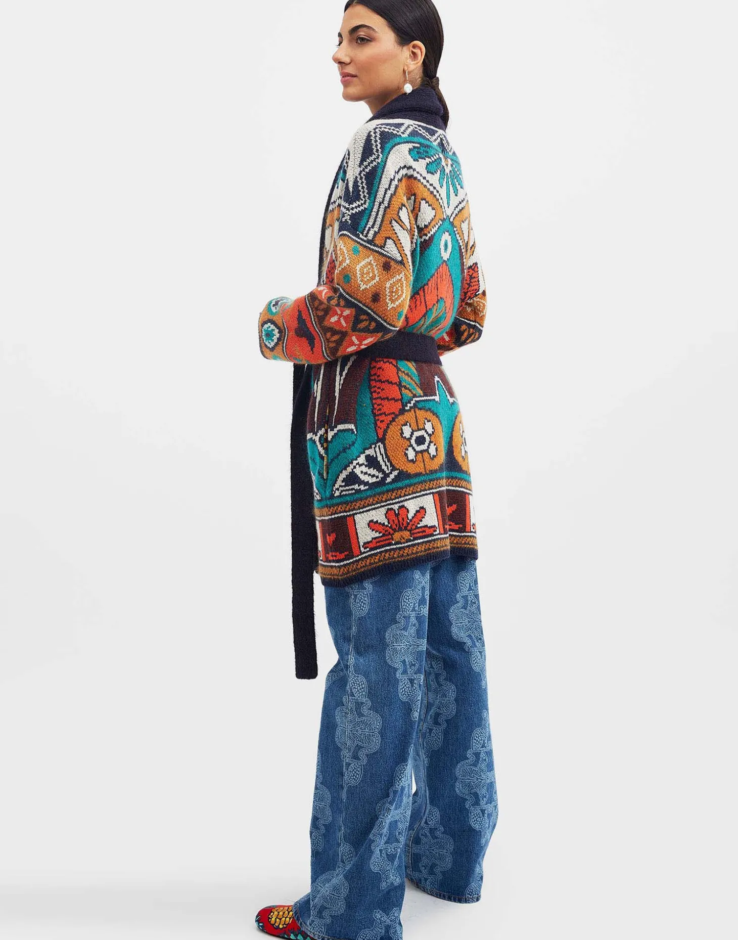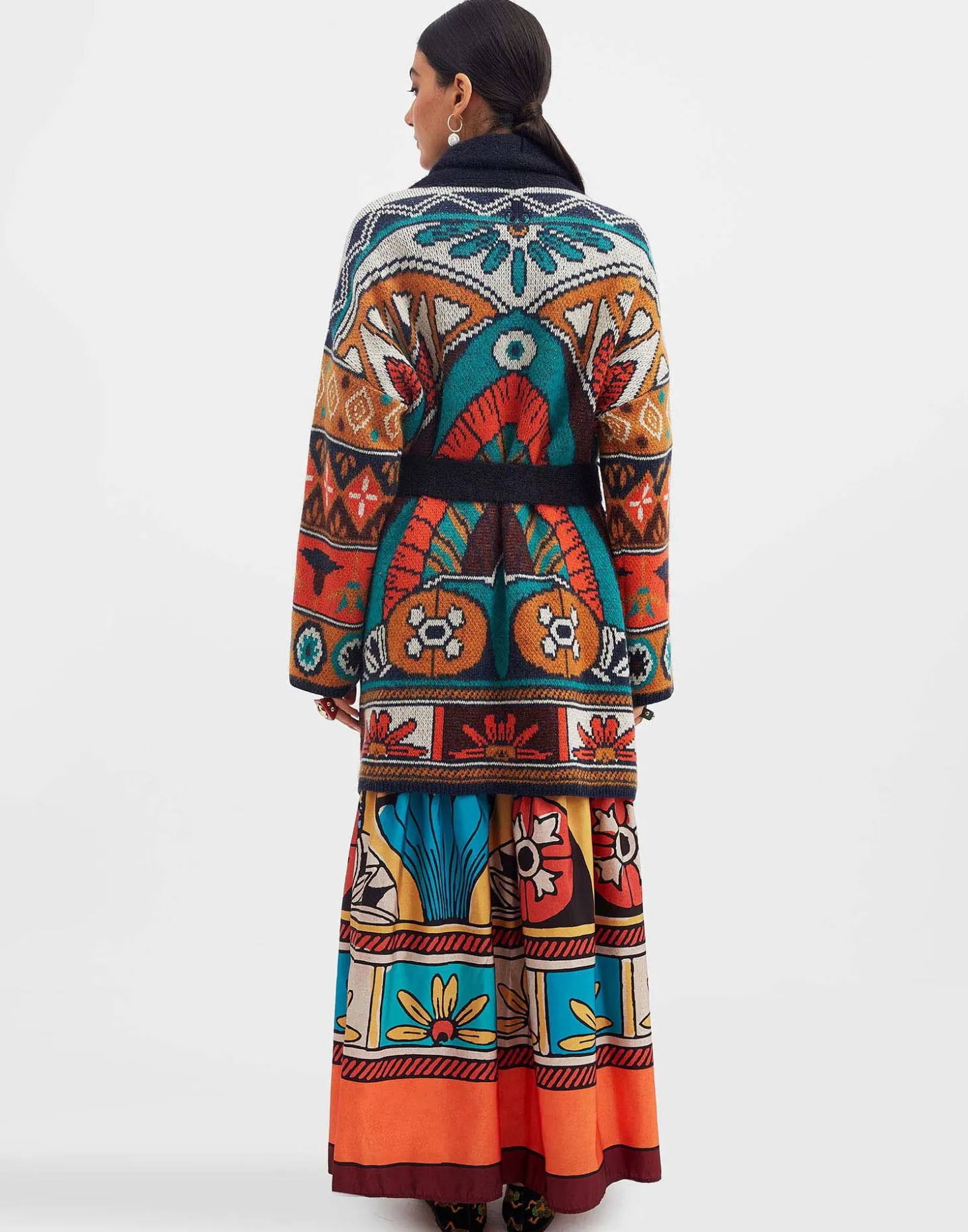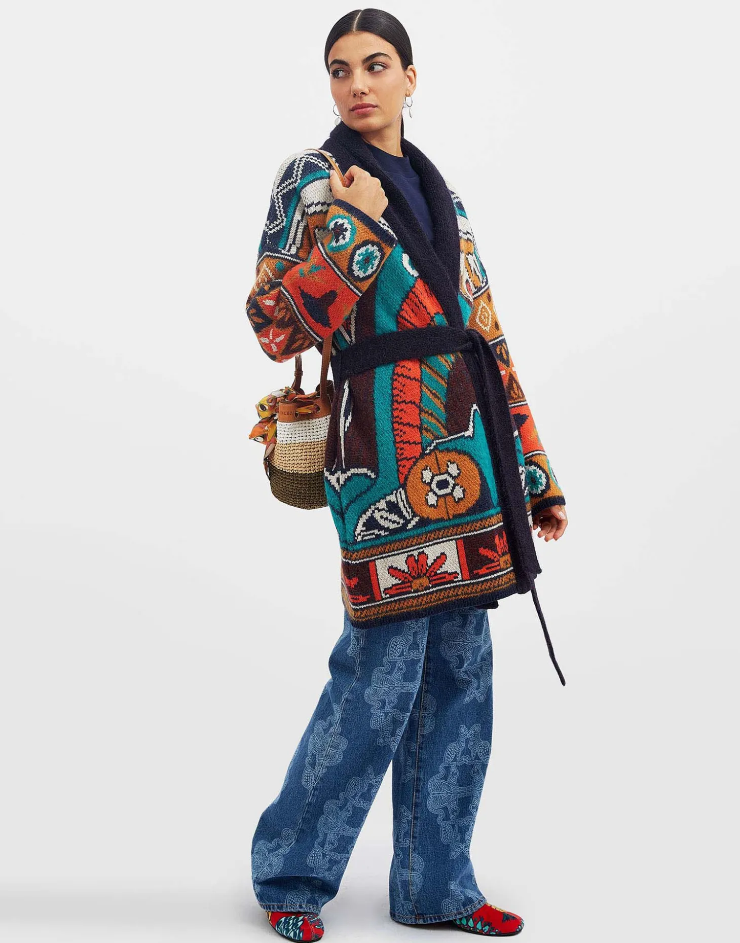 Now THIS is next-level loungewear. Undeniably the most opulent offering in our Italian Knit Kit, this is a statement sweater piece, cut from a luxurious merino-cashmere blend, and arriving in our in house designed, hand-placed Philae print, inspired by the island temples found in Aswan, Egypt. Designed for layering over your favorite denim or basics during the day, this showpiece shines on a night out thrown over an all-black ensemble with heels. Wear her tied at the waist for an hourglass effect, or open as a jacket – no matter the moment, this is a knit guaranteed to lift your mood.