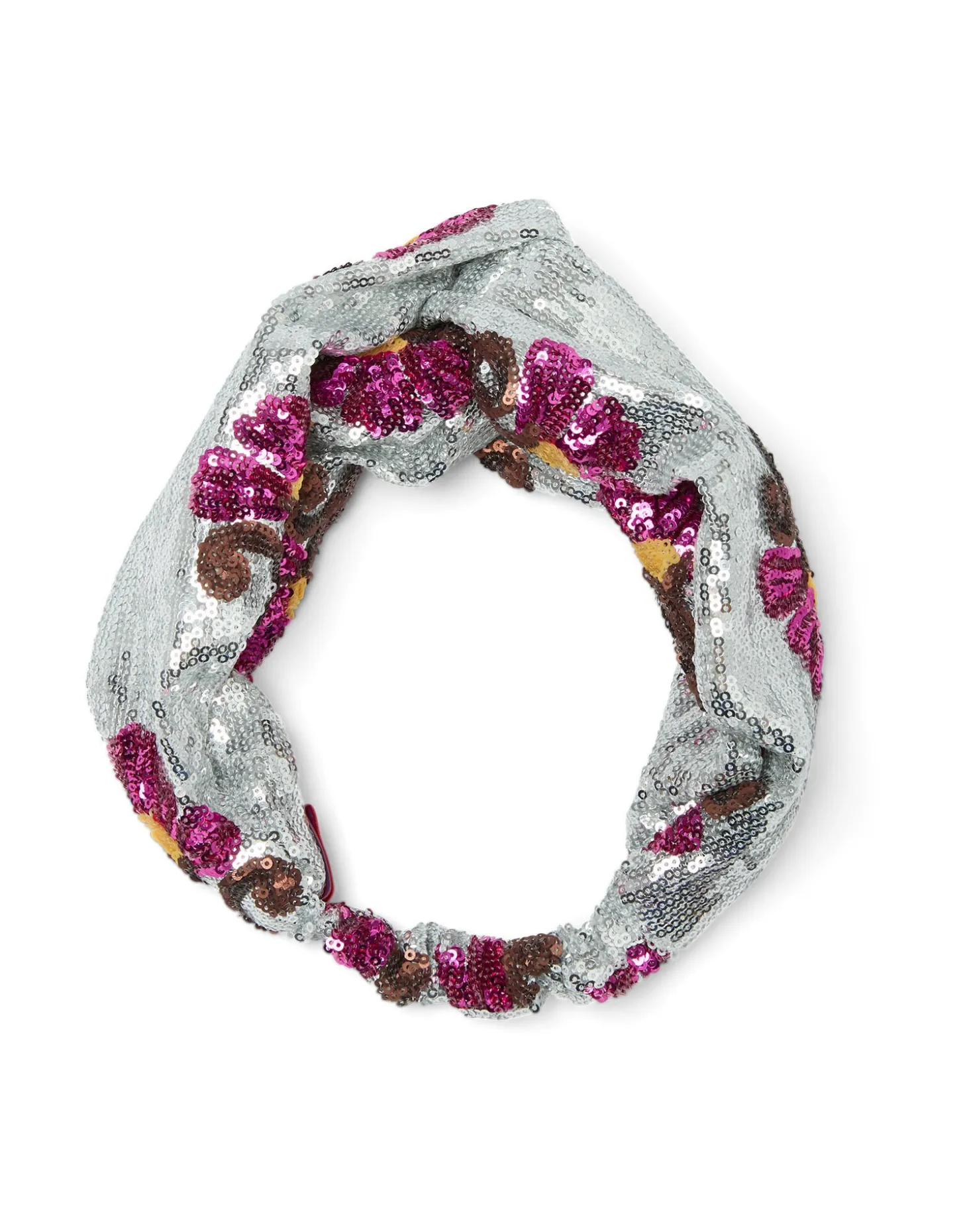 Enter your party era with this opulent scarf-like headband, strewn with fabulous textured sequins to make effortless evening glamour look like a cinch. Elasticated at the nape, pull it wide or style it narrow and definitely wear it for Sunday brunch, too.