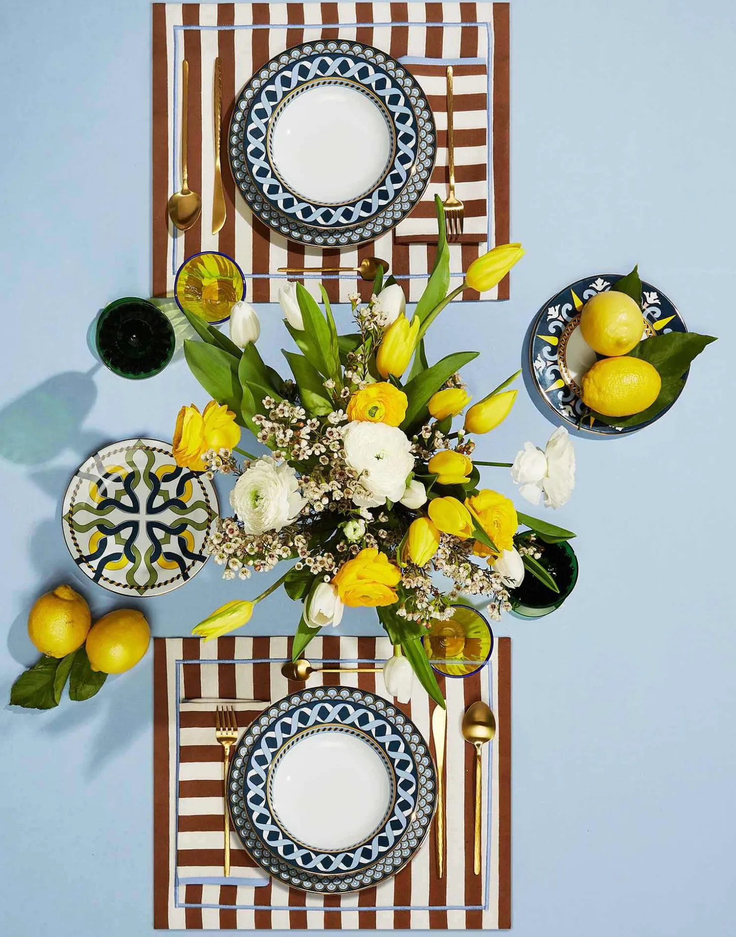 Our 100% linen placemats are as crisp as can be and come in sets of two. Slightly padded with stitched borders and an LDJ logo on the reverse side, this version arrives in our bold Riviera stripes to add a pop of color to your white linen at home or to bring contrast to your fave La DoubleJ floral tablecloth – match with Riviera Napkins to double the dosage. Treat these babies with care: our bellissimo Italian-made linen has natural irregularities, such as small knots in the yarn, but for us that doubles the charm.