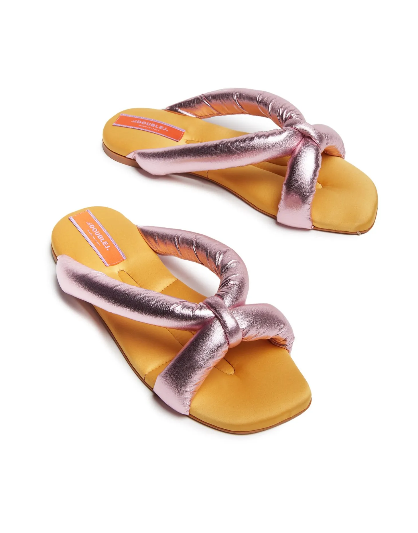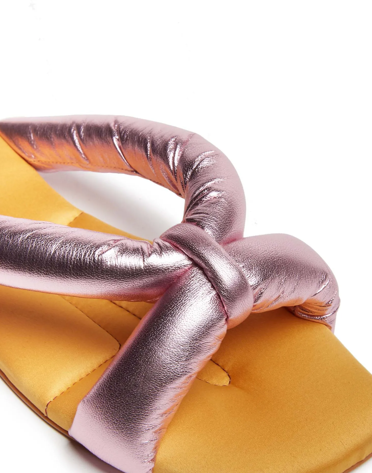 For the fellow Color-block cravers in our midst, we created this simple but striking beauty, a slide so delicious, we called her “Precious”. A luxurious padded footbed sits under sleek knotted straps, making these comfortable enough for all day wear, and chic enough for all night dancing. Our shimmery metallic Italian leather version pair perfectly with a big skirt or Choux Dress, while our Shearling version vibes well with jeans and even socks on late summer evenings.