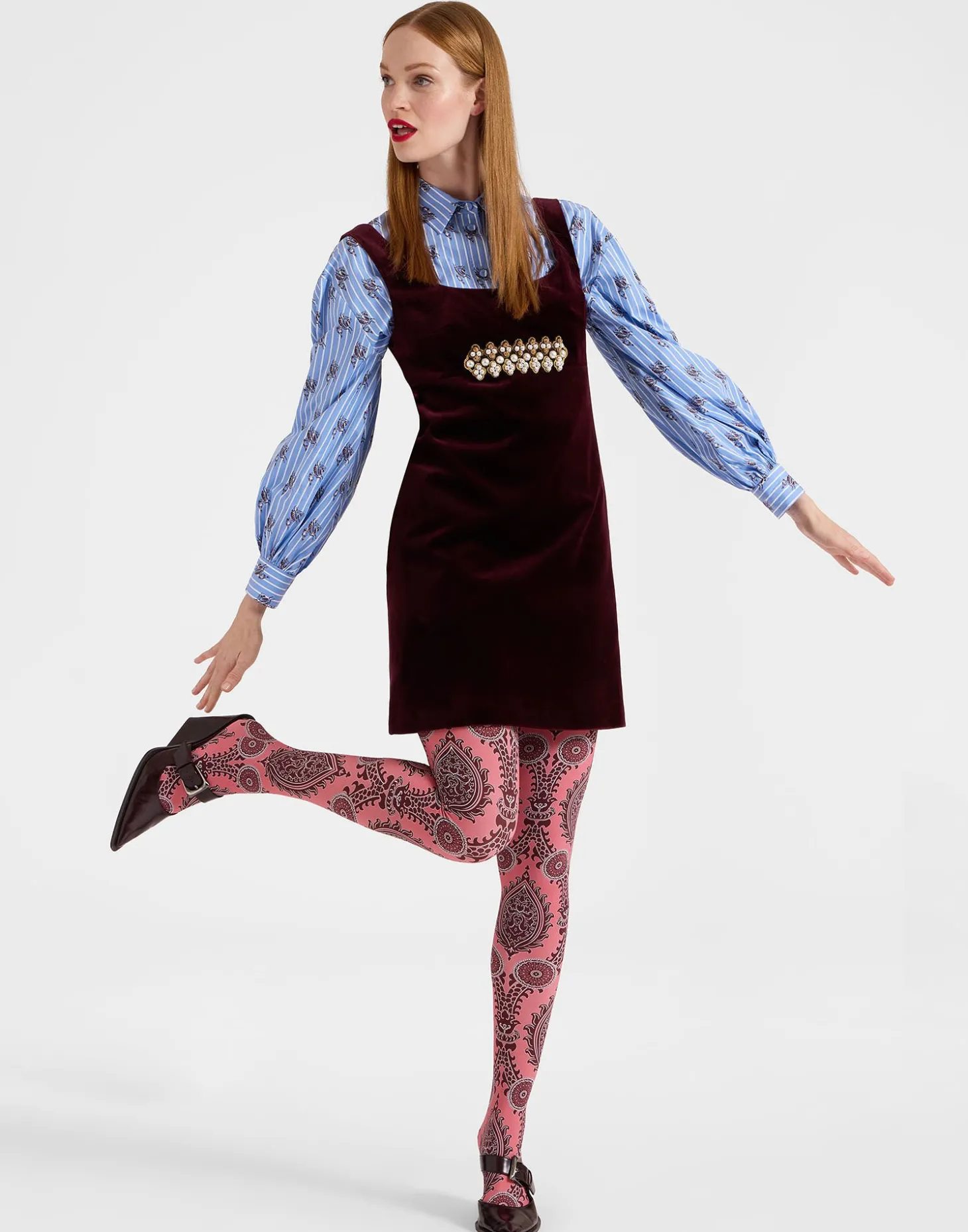 La DoubleJ is in the tights game, people! Whether you’re a minimalist looking to add just a pop of print to an all black outfit, or going full mix and match maximalist with a panoply of patterns, these babies or your easy go to for elevating any outfit. Arriving in our silky soft Italian knit in this Renaissance-inspired print, these layer beautiful under your favorite fall frock, our statement Mini Skirts, or even your Good Butt Shorts for transitioning to Autumn. Move over socks – tights are taking center stage this season.