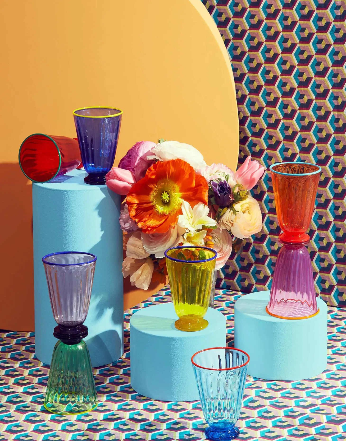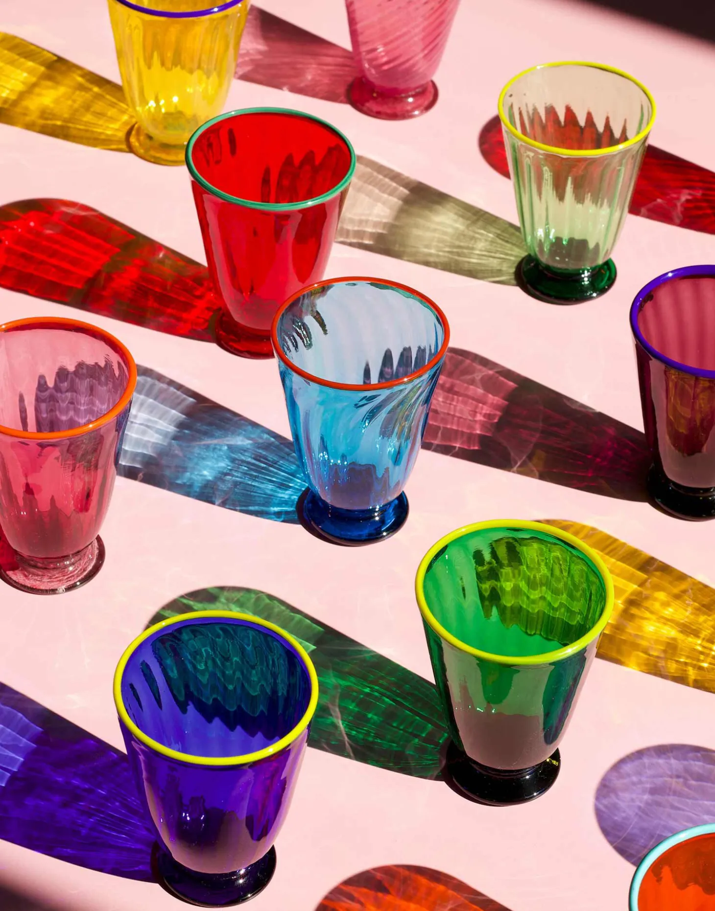 Be the hostess with the definitive mostess with this set of eight rainbow hued glasses guaranteed to blow the happypants off even the most popular of dinner party guests. Created in partnership with world-renowned Venetian glassmaker Salviati, each handmade glass is ridged with a contrast rim and features all the unique signs and marks of the island’s production methods: those rings, bubbles and marks are supposed to be there. The perfect addition to any maximalist, print-happy table setting!