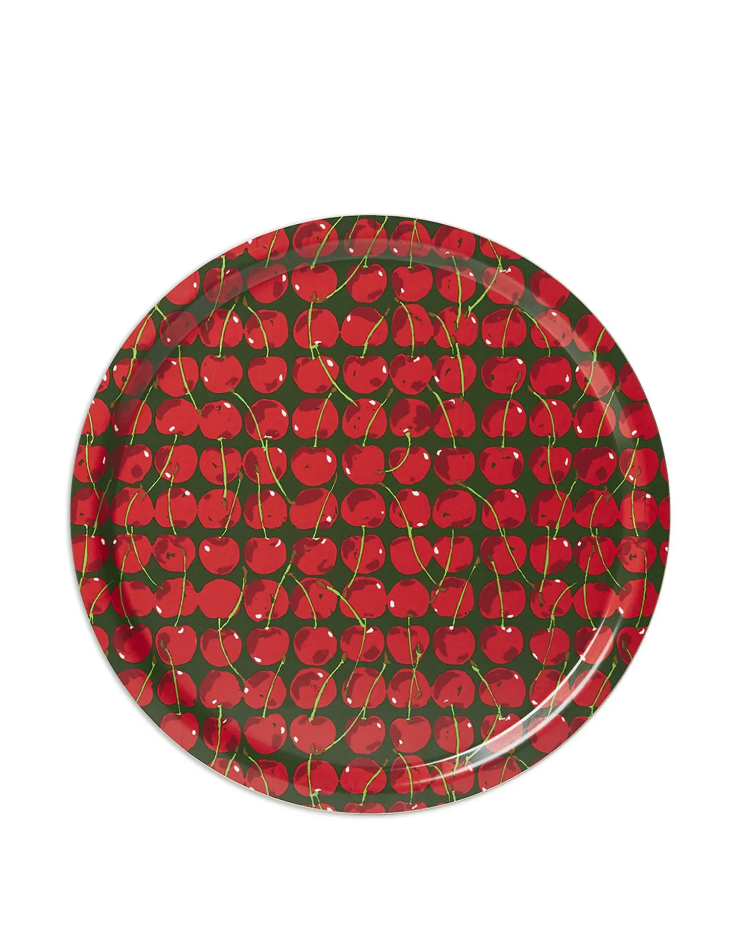 Round Printed TrayCherries Verde in Laminated Birch Wood
