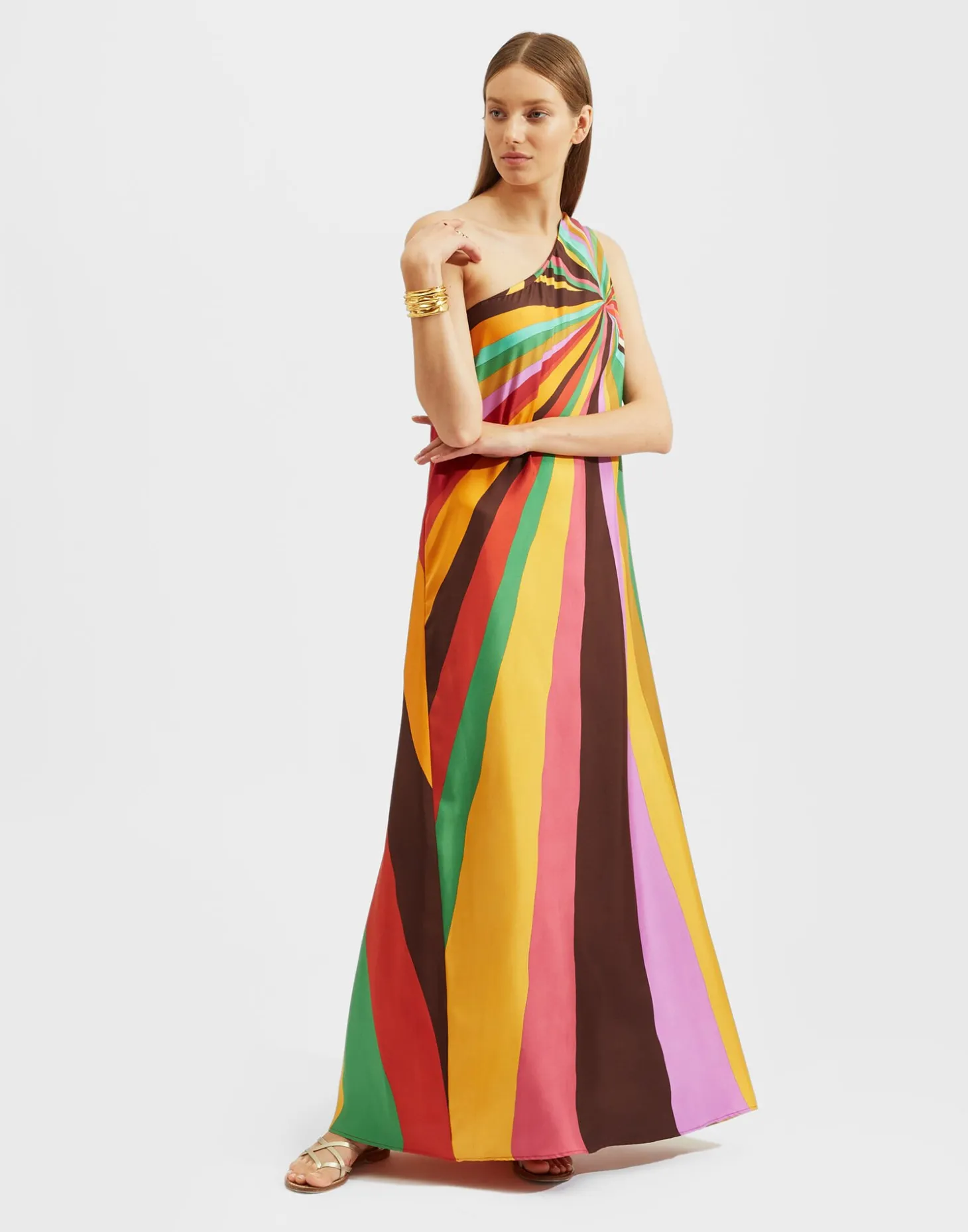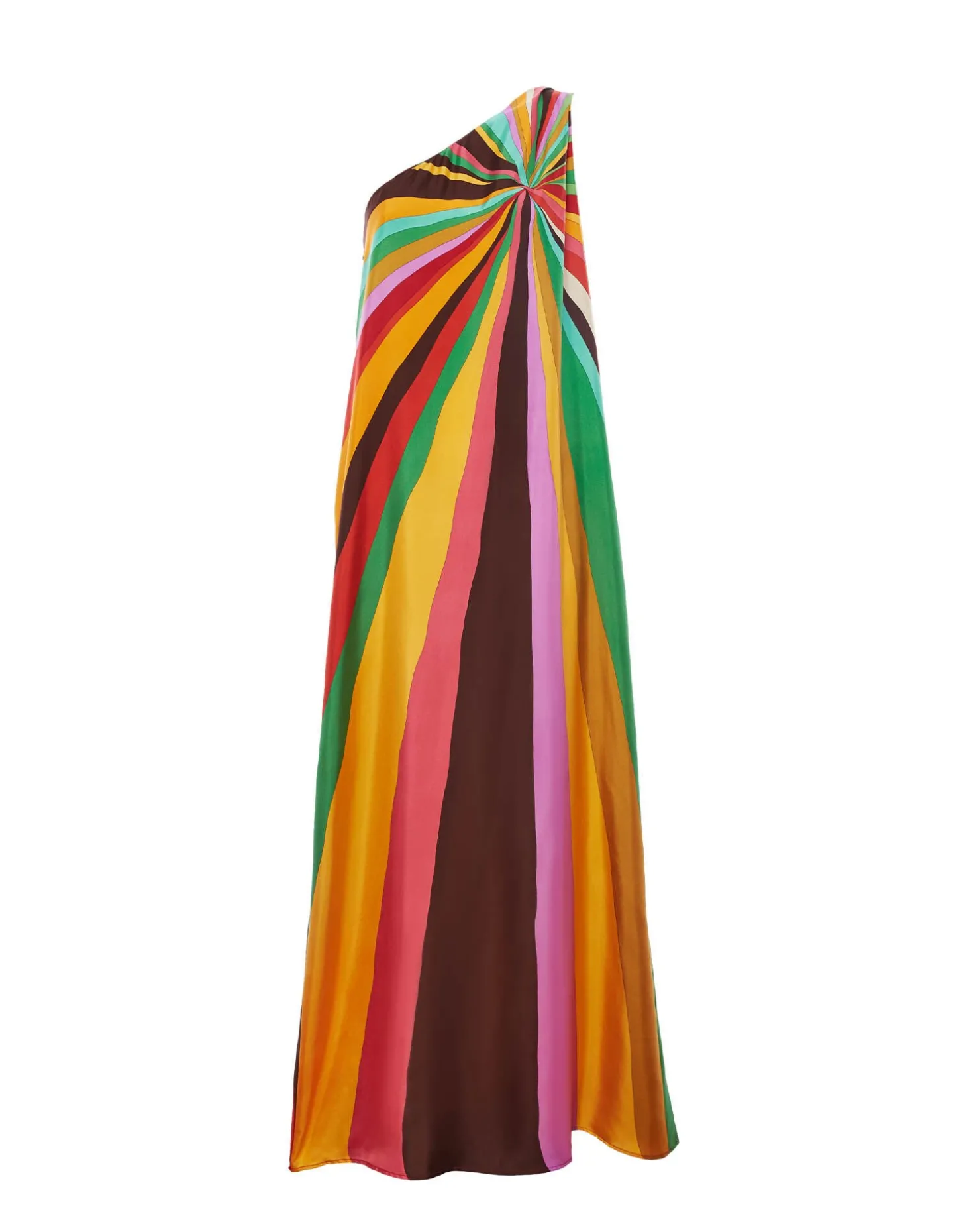 Who knew there was so much drama in deliciously draped fabric? Harking back to disco days at Studio 54, the one-shouldered Roy Dress is cut in a simple column shape that serves the glamour every time. We put that down to our gorgeous silk twill that cascades off the shoulder, and total floor-sweeper of a skirt. There’s pockets (every glamourpuss needs pockets) a side zip, and it’s finished with this glorious hand-place Rainbow motif for extra summer radiance.