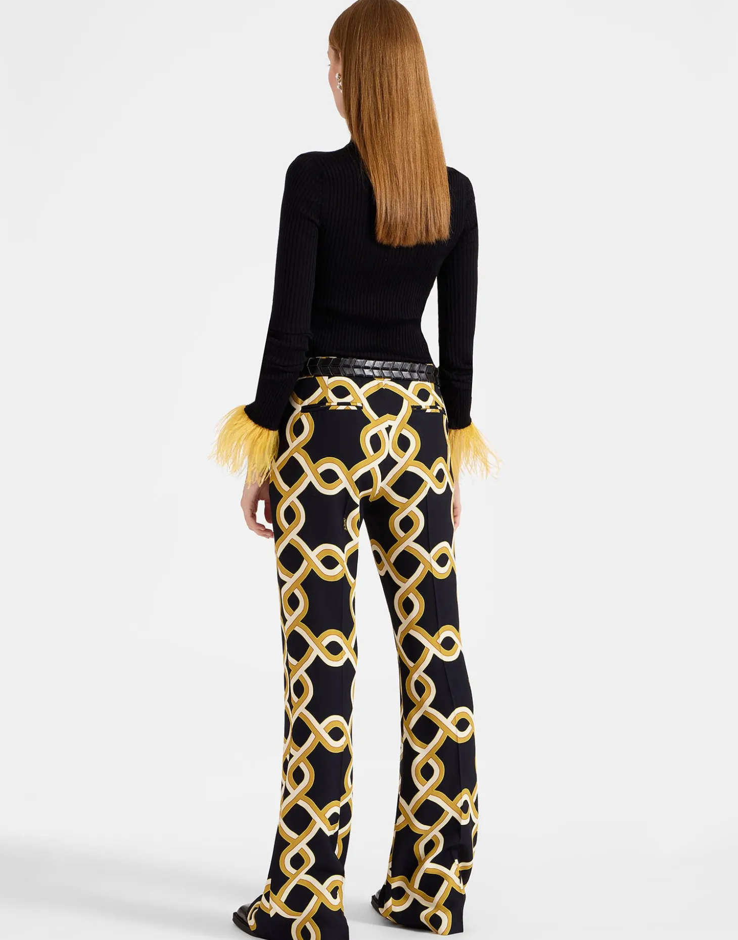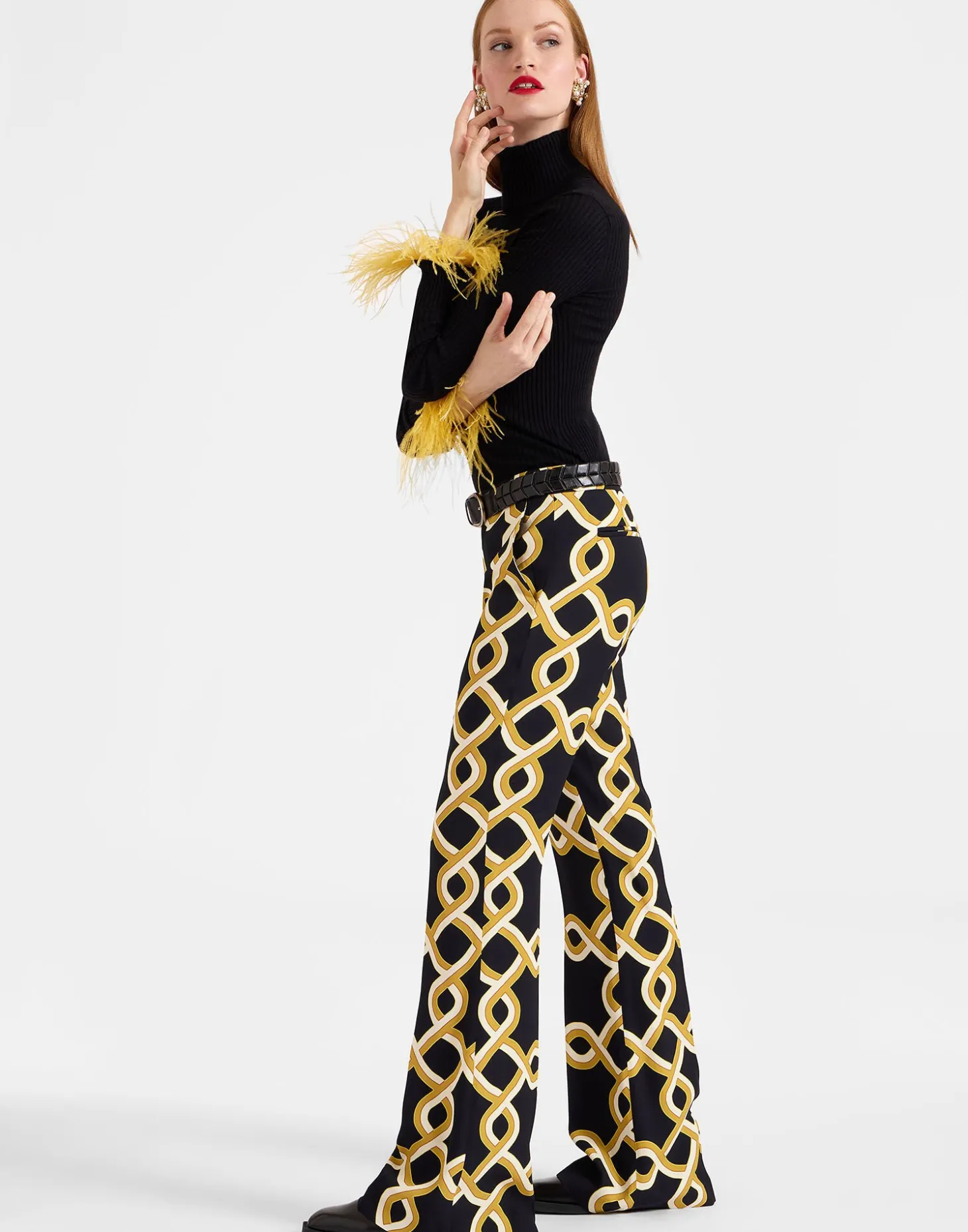 And now, for a pair of pants that is going to make your butt look a million bucks! Sitting comfortably on the hips, these bootcut trousers are super flattering on legs of all ages and arrive in slinky new satin in our Mediterranean-inspired Tackle print. Utterly gorgeous worn with the matching Boy Shirt for a modern and maximalist wedding look, equally great with your cashmere crewneck for work.
