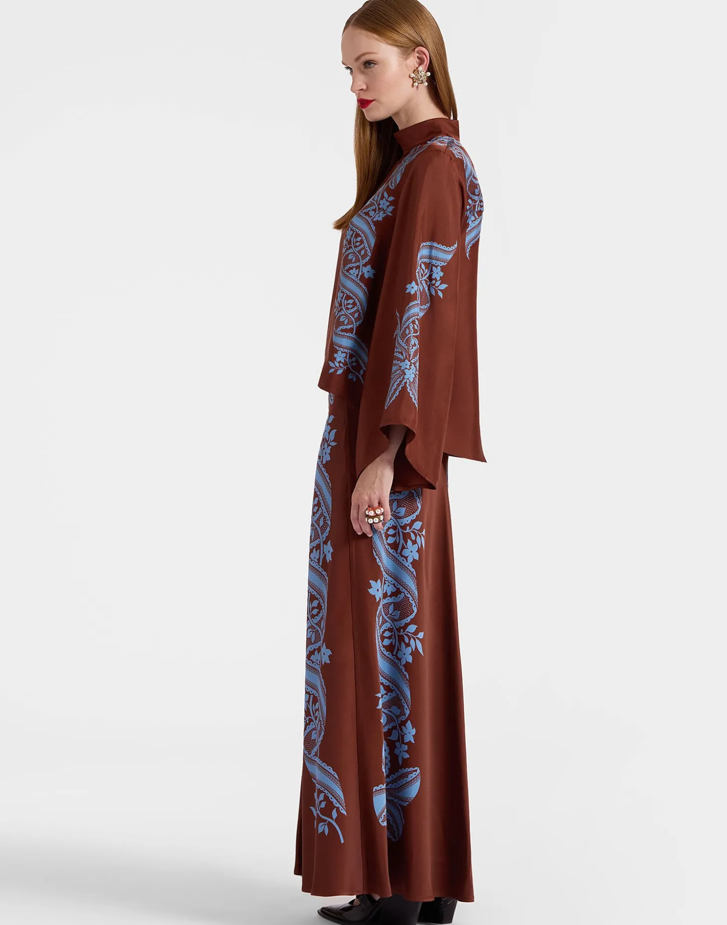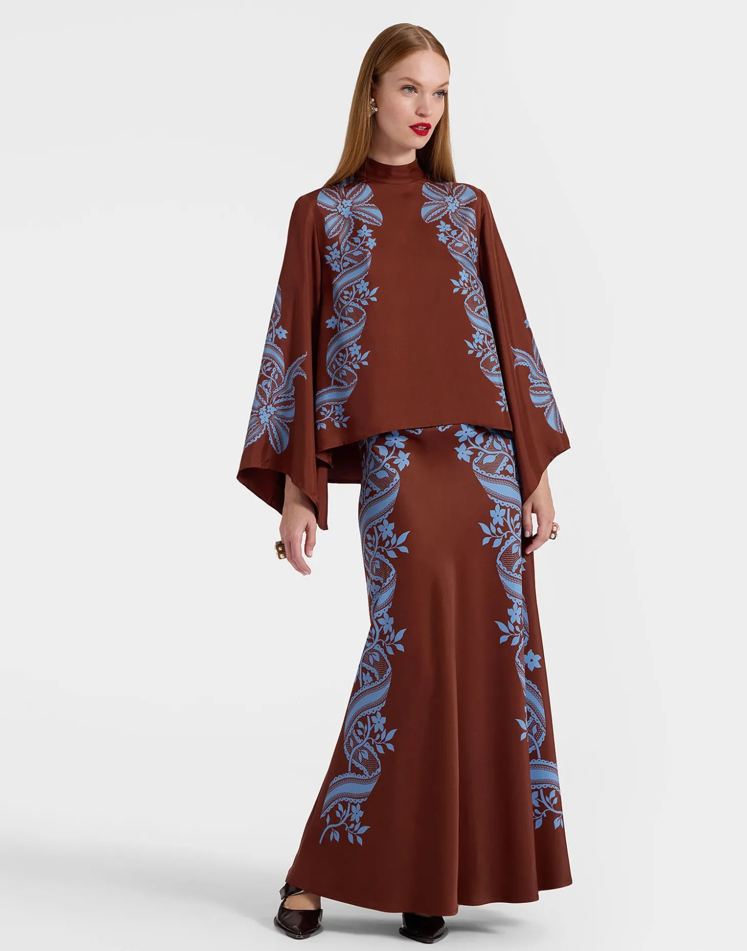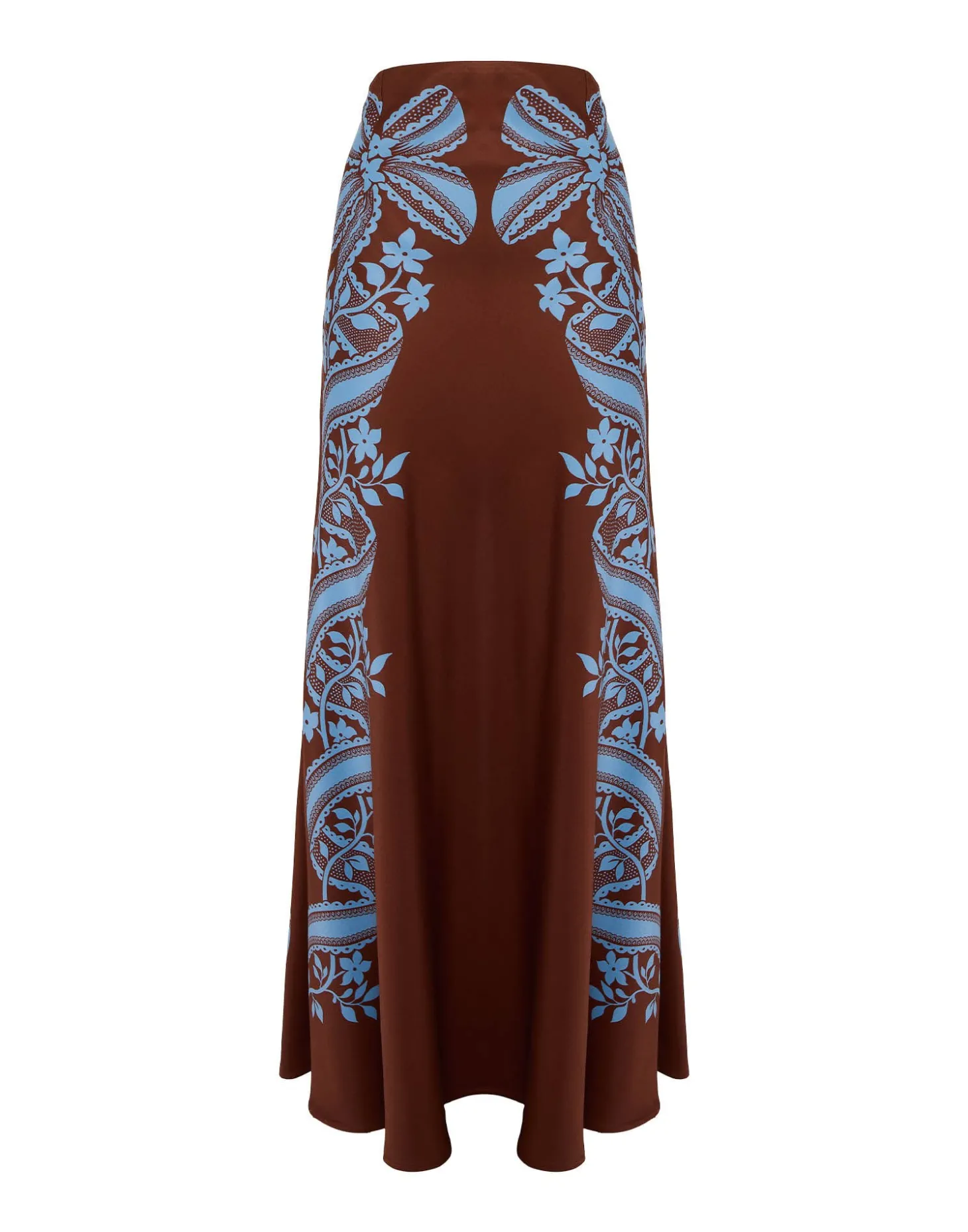 Throw all your other maxi skirts out, you’ve found the one. Super fitted through the hips, this high-waisted beauty flows out into a fluted soft mermaid hem, accentuating all your gorgeous curves (and giving you some if you don’t have ‘em). Perfect for long legged ladies, this satin stunner arrives in two hand-placed, Renaissance-inspired prints, ready to be layered under a chunky sweater during the day, and a chic, equally sleek top at dinner.