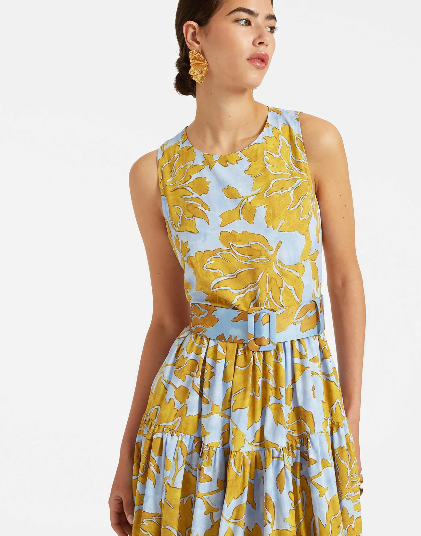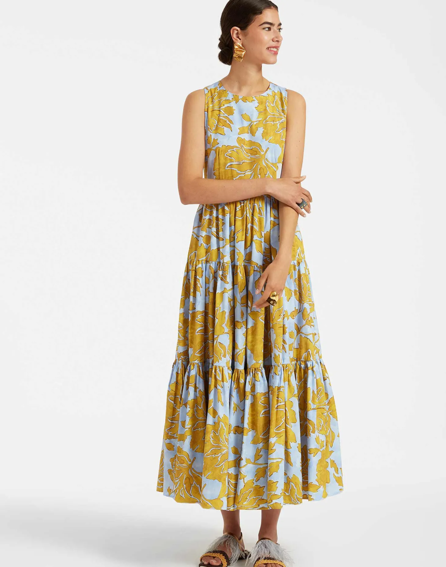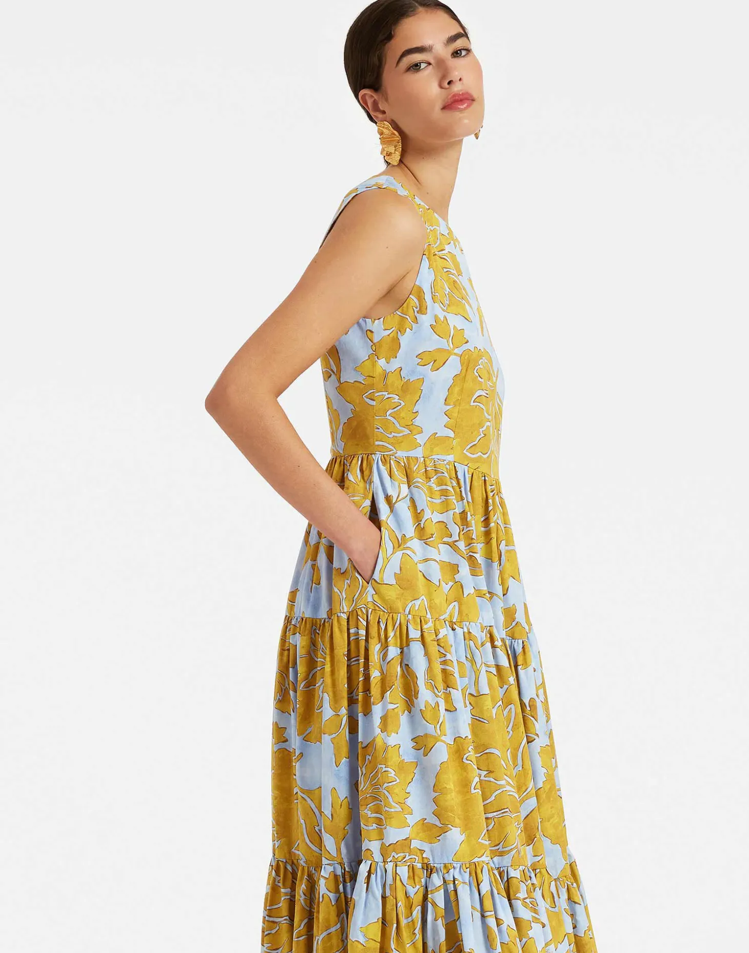 The Sleeveless Big Dress is what we like to call our secret weapon. Pull it out of your closet when you want to dazzle and delight and don’t settle for anything less, babe! It has a voluminous three-tiered-skirt, a zip in the back, and it’s ready for a va-va-vacation cut in our new summer poplin that has a lighter, crispier finish. Match it with a cocktail and a sunset view.