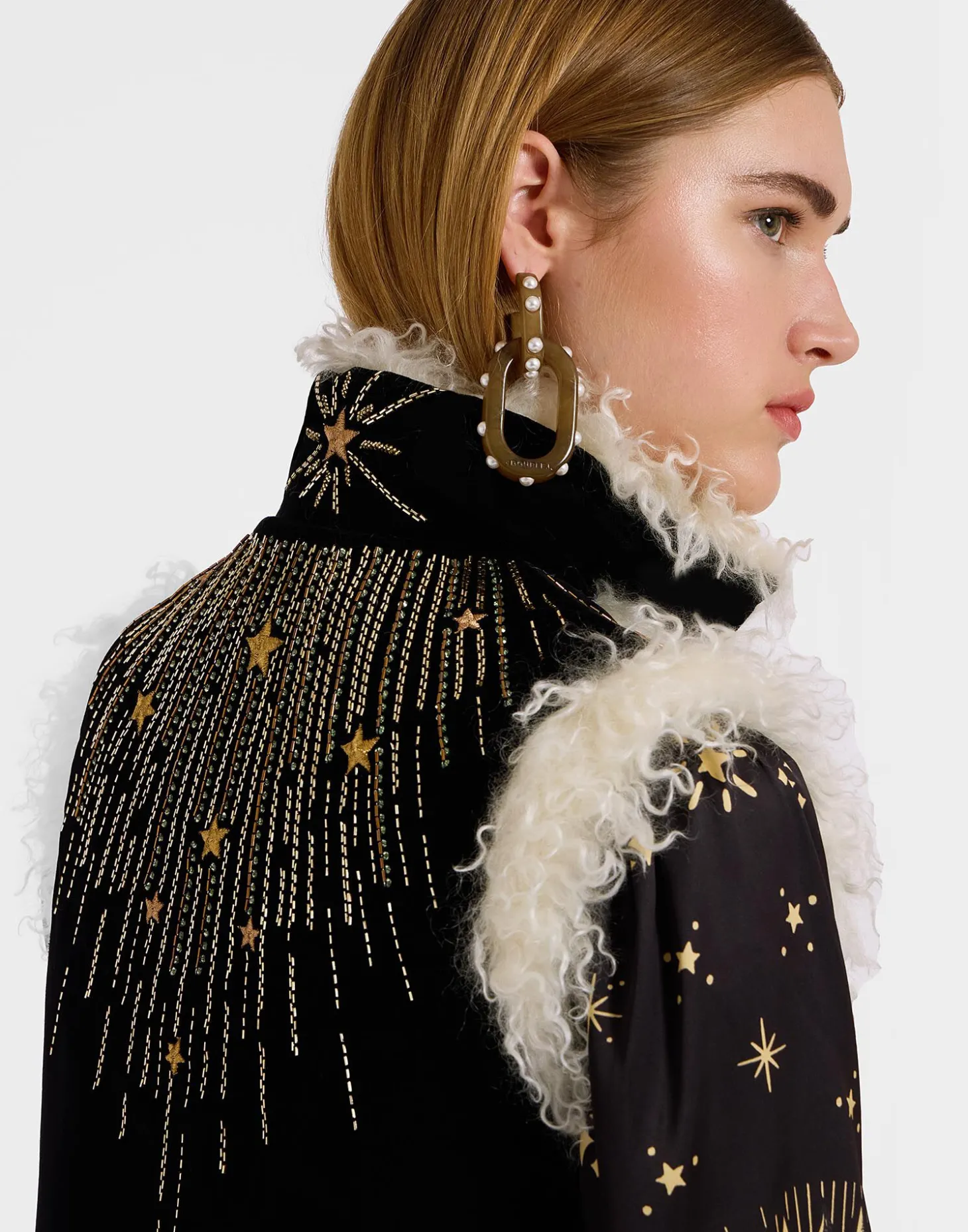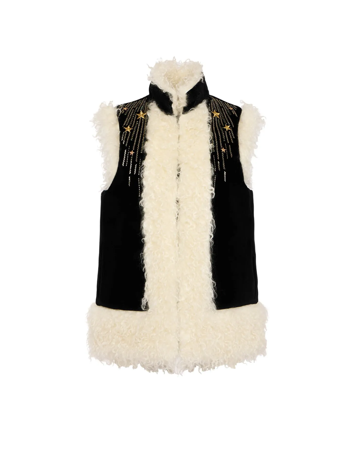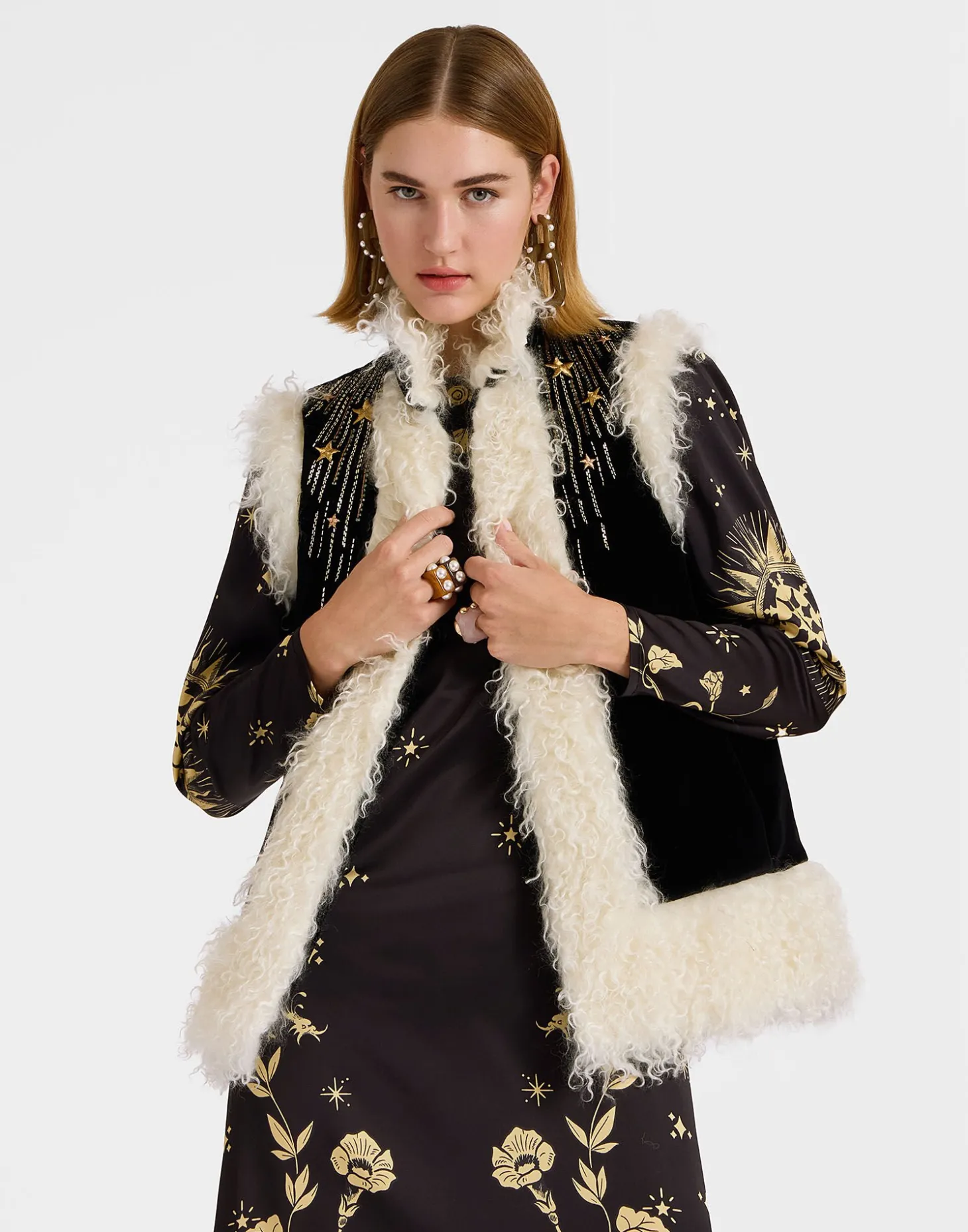 If we have one tip for you this season it’s to get into gilets. In homage to the iconic Afghan-inspired sheepskin coats that were the cornerstone of late 60s celebrity style, this version arrives crafted in our solid Italian velvet with gold embroidery, so, yeah, its pretty special. Trimmed with a cozy wool collar, its boxy shape and roomy armholes makes this the perfect layering piece for all your wanderlust winter sojourns. Throw it over the big-sleeved Poet Shirt, Big Shirt Dress or anything just as voluminous.