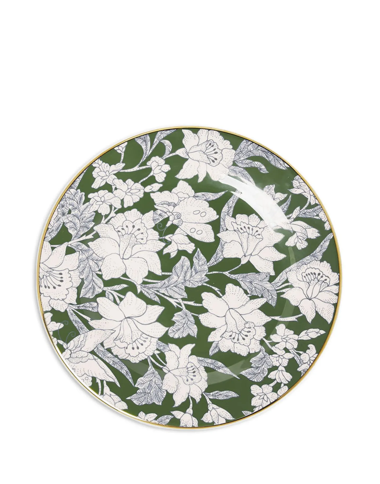 Made of the finest Italian porcelain, our dinner plate set comprises a soup plate (also perfect for your Italian pasta) as well as a flat dinner plate, both crafted from high-quality porcelain with hand-painted gold trim. Inspired by Roma, Italy’s grandiose capital of all things amore, this version combines dramatic geometrics and romantic florals for an infatuating holiday setting with zero effort required. Want to amp up the opulence? Our complete Roman Holiday collection is here to serve, brimming with Dessert Plates, Vases, Tablecloths, Trinket Trays and the rest.