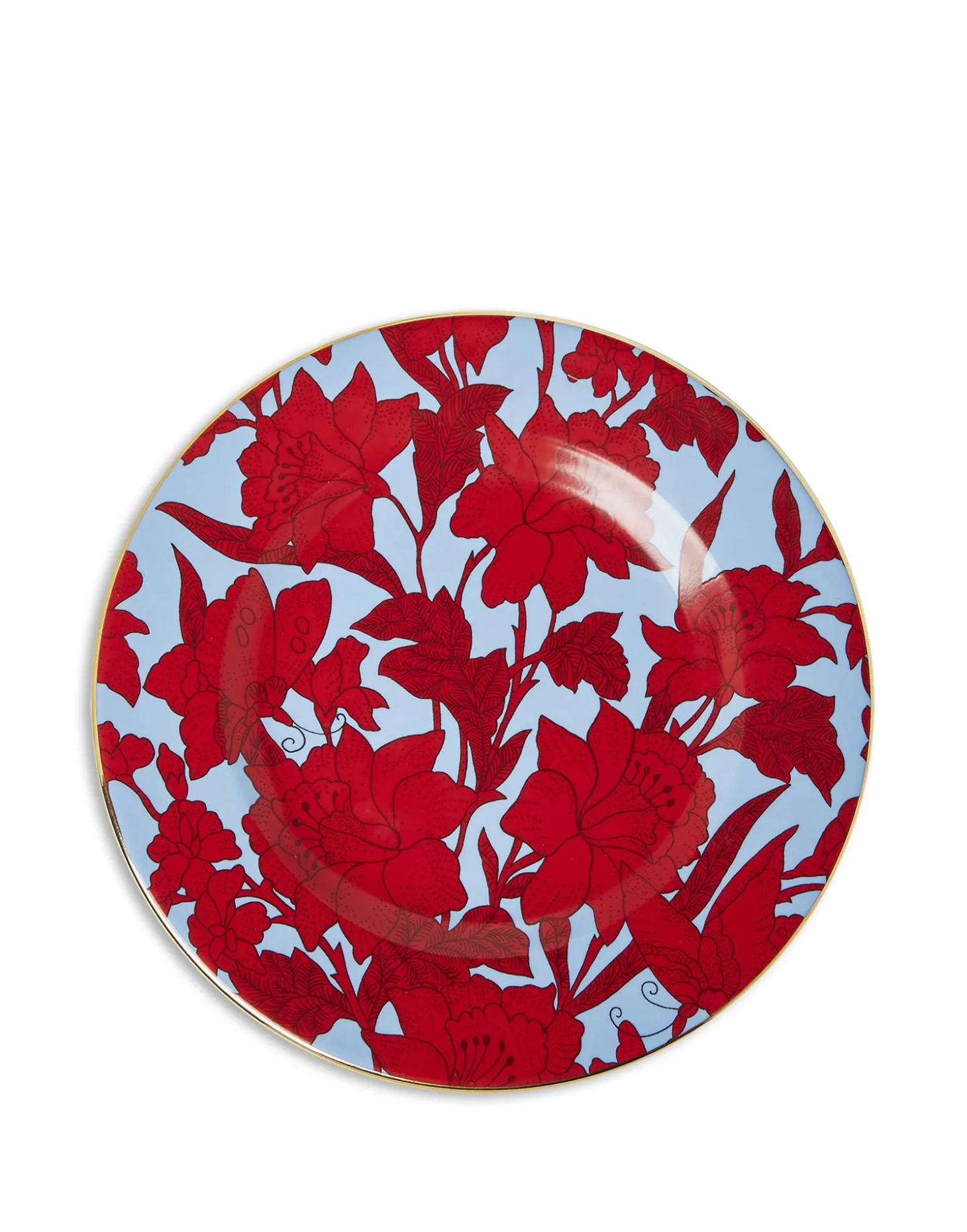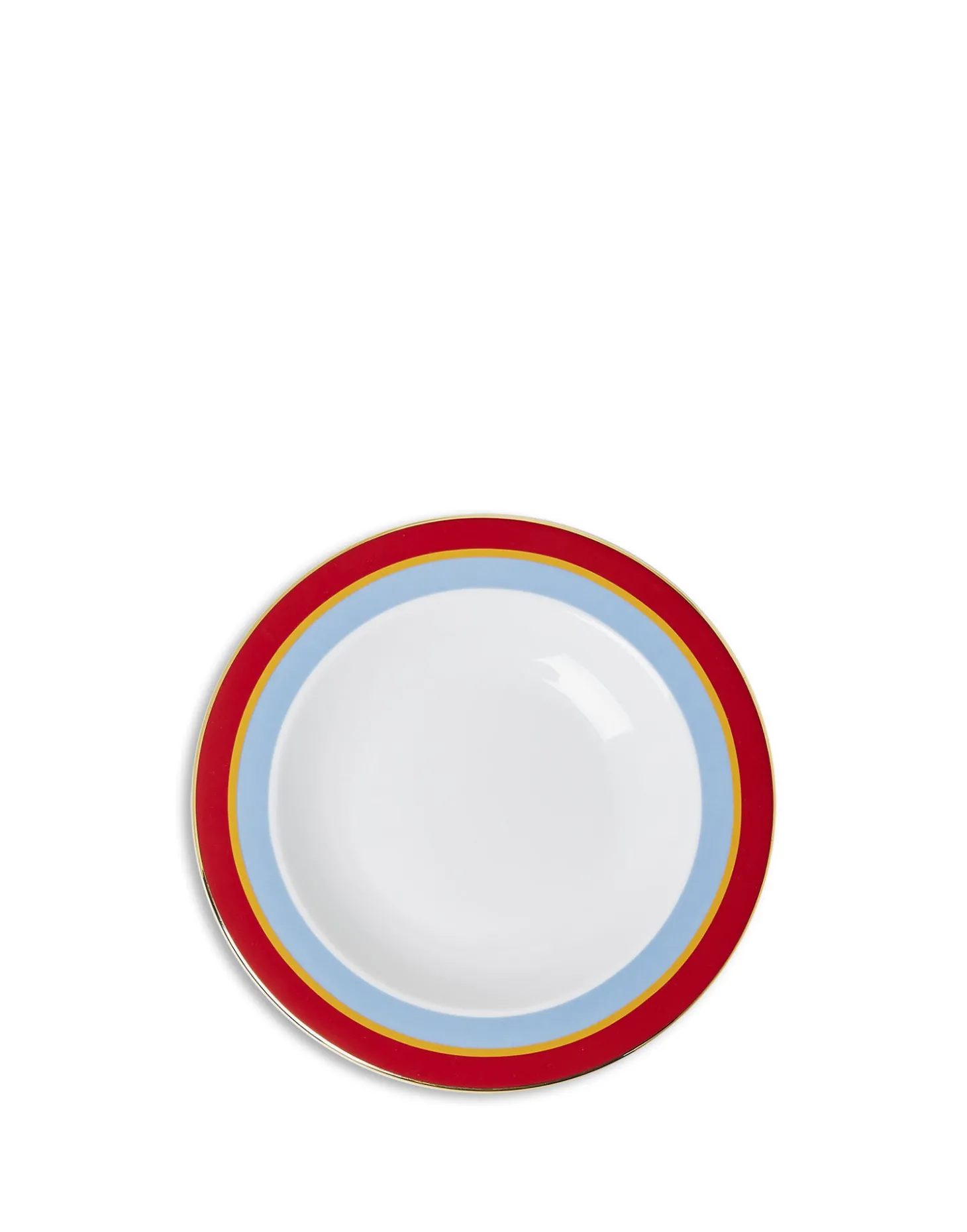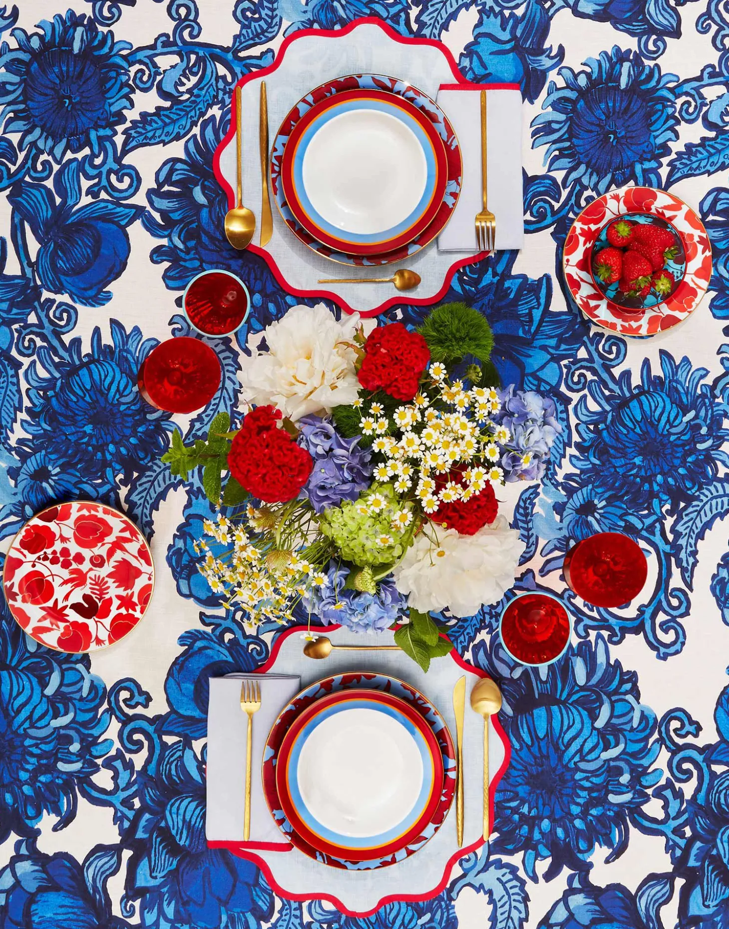 Made of the finest Italian porcelain, our dinner plate set comprises a soup plate (also perfect for your Italian pasta) as well as a flat dinner plate, both crafted from high-quality porcelain with hand-painted gold trim. Inspired by Roma, Italy’s grandiose capital of all things amore, this version combines dramatic geometrics and romantic florals for an infatuating holiday setting with zero effort required. Want to amp up the opulence? Our complete Roman Holiday collection is here to serve, brimming with Dessert Plates, Vases, Tablecloths, Trinket Trays and the rest.