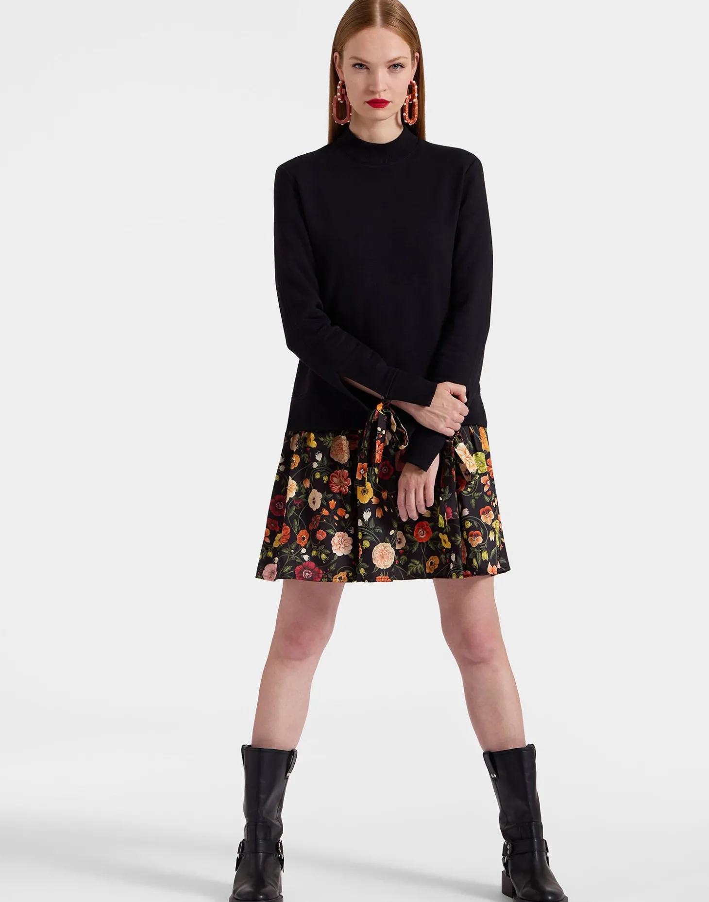 The Sporty Dress puts a cute style spin on the humble sweatshirt so you don’t have to. Done in our soft 100% cotton felpa, the sweatshirt part does the casual-comfy-cosy thing, while the silky twill flippy skirt adds a flirty touch. As for the details, we love that mock neckline and ribbons on the sleeves you can tie or let loose. Finished in this vintage Arcturus print, it’s as cute for city cocktails as it is easy for a casual Sunday. You know we love a little high-low mix.