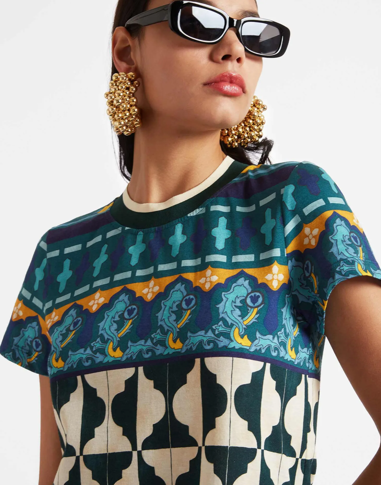 You know and love our OG, the Swing Dress. Now meet its super relaxed sister, the Sporty Swing. This babe has all the same good genes (T-shirt silhouette, long hemline) but arrives in comfy cotton jersey so you can crack it out on the everyday. Stretchy across the shoulders with a super simple loose fit, it’s the slow Sunday morning/park picnic/easy office dress your wardrobe has been crying out for. Our maximalist LDJ twist? Our outta-this-world new season prints and cool, contrast rib collar.