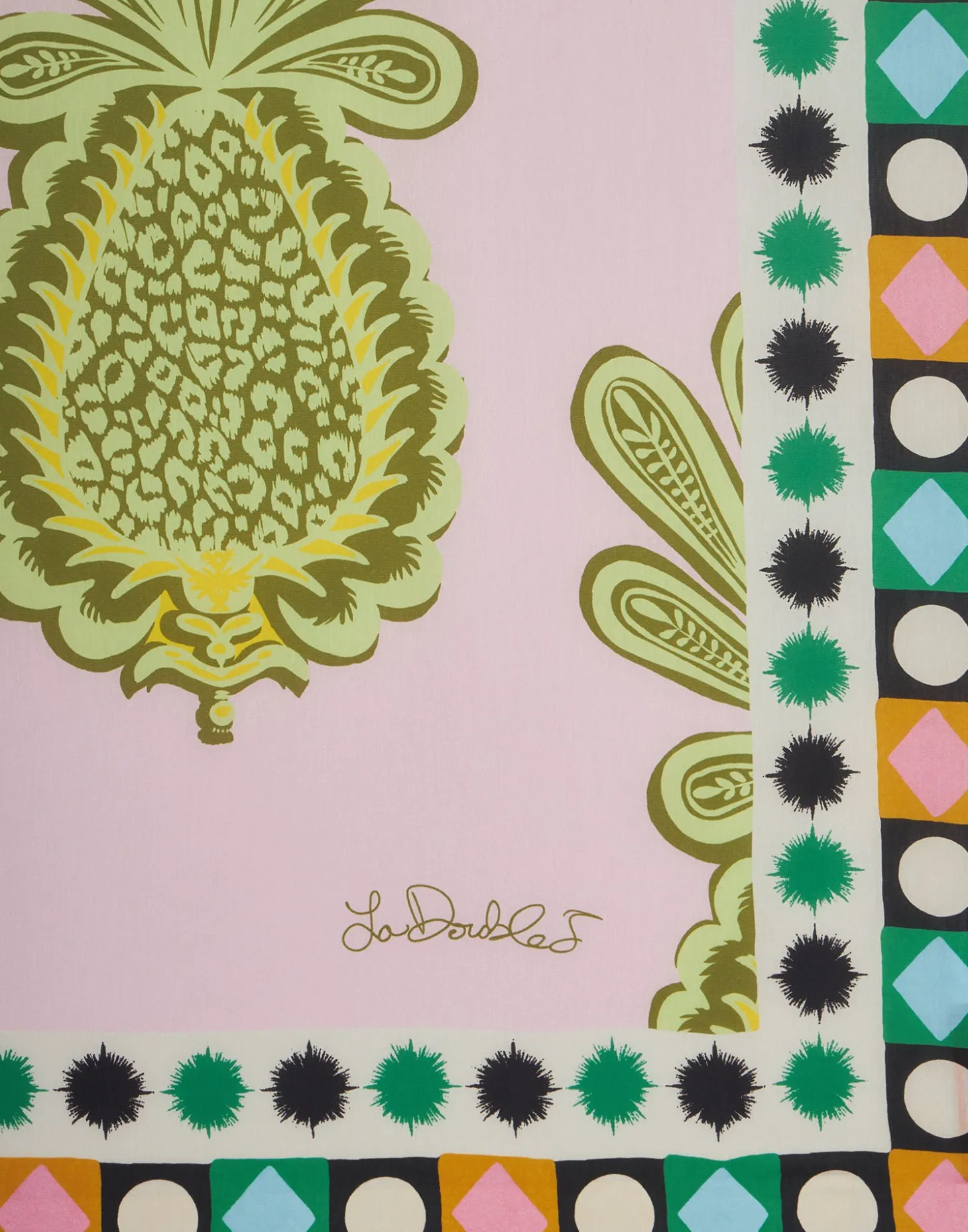 Square ScarfBig Pineapple Pink in Cotton/Silk