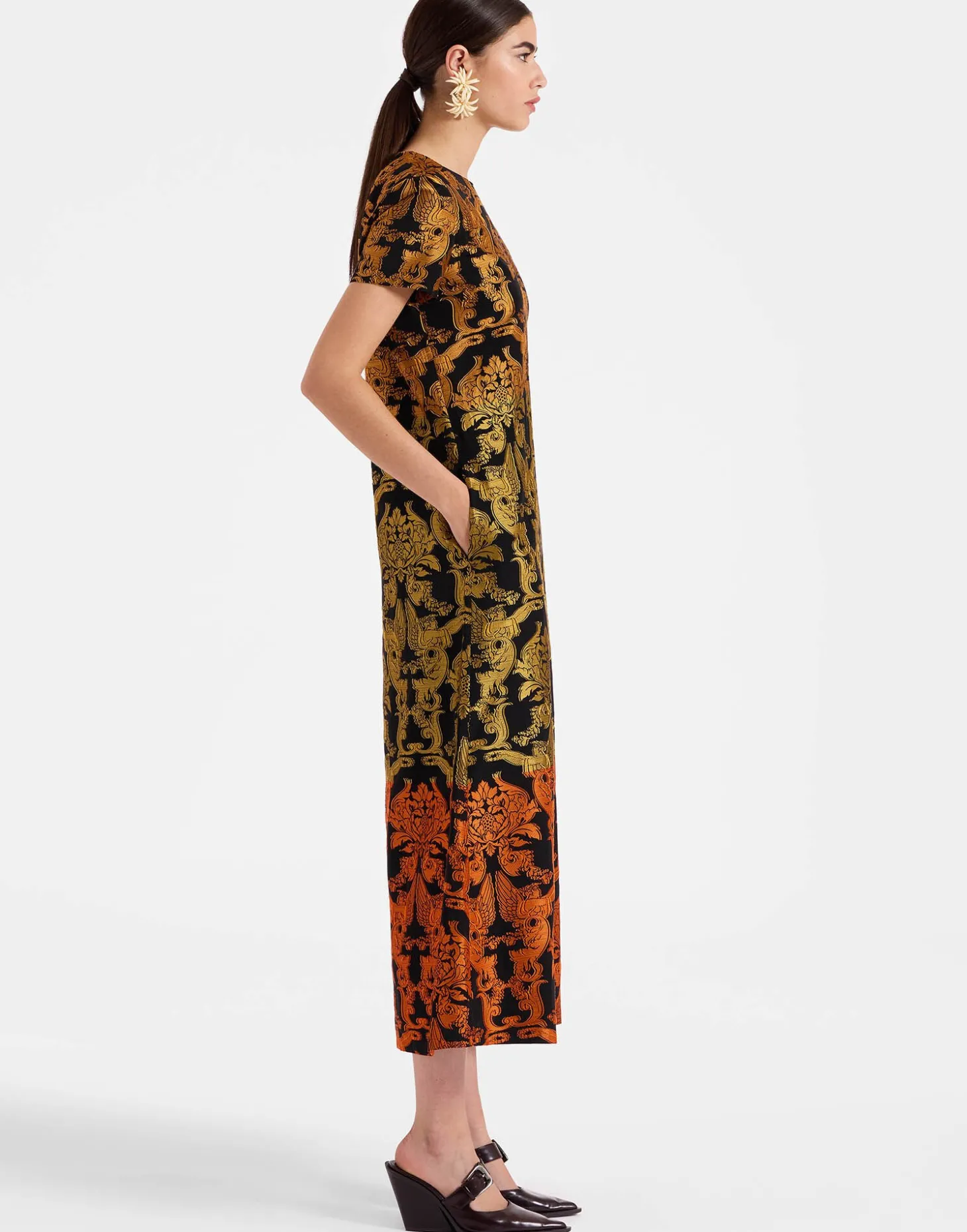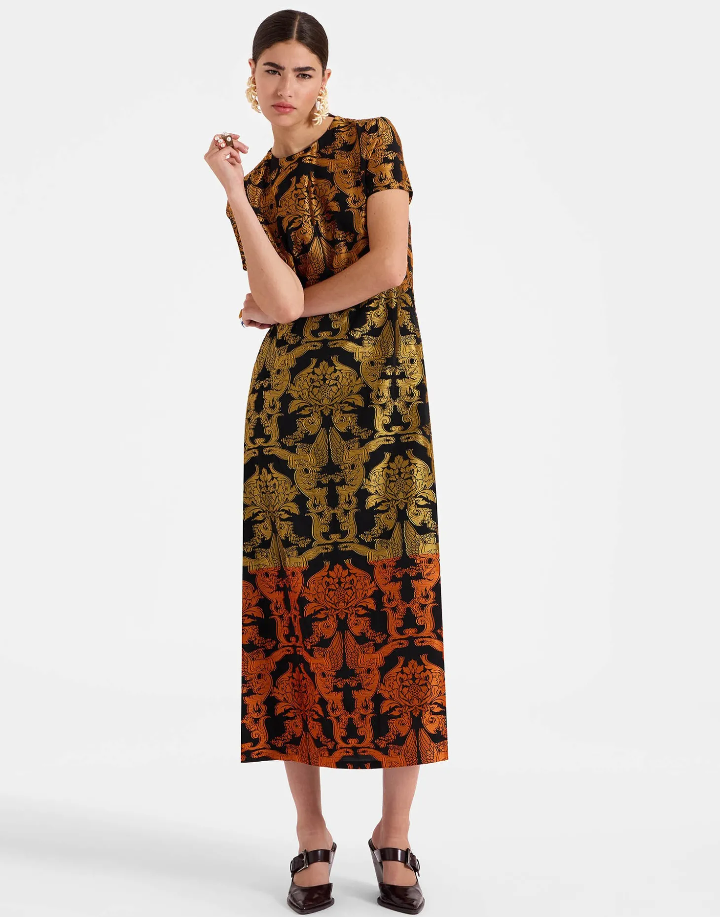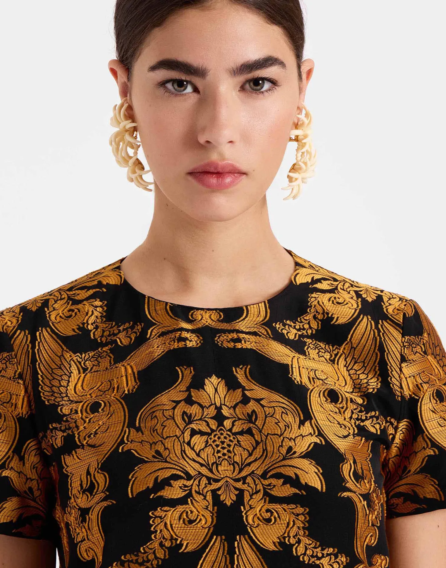 There’s nothing quite like your first love. For us, that’s the Swing Dress, our first silhouette which we’ve reimagined in luxurious textiles and intricate embroideries for our new series of Super Swings! Same classic A-line shape, same slip shoulders, same effortless elegance… Just now with more structure, substance and sparkle for an elevated take on our best-selling dress. This version is crafted in our majestic Renaissance-inspired Cherubs print in our elegant fil coupe.
