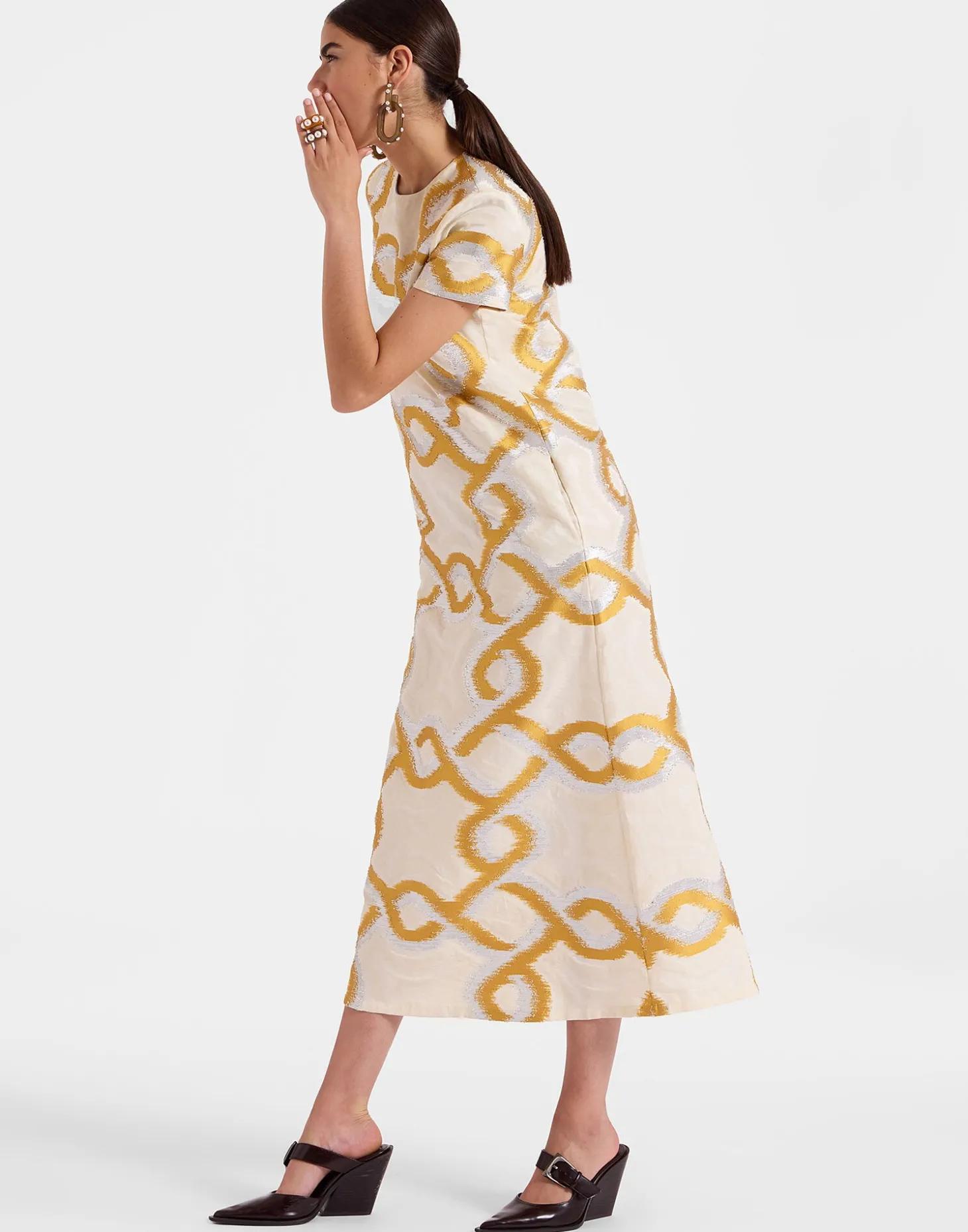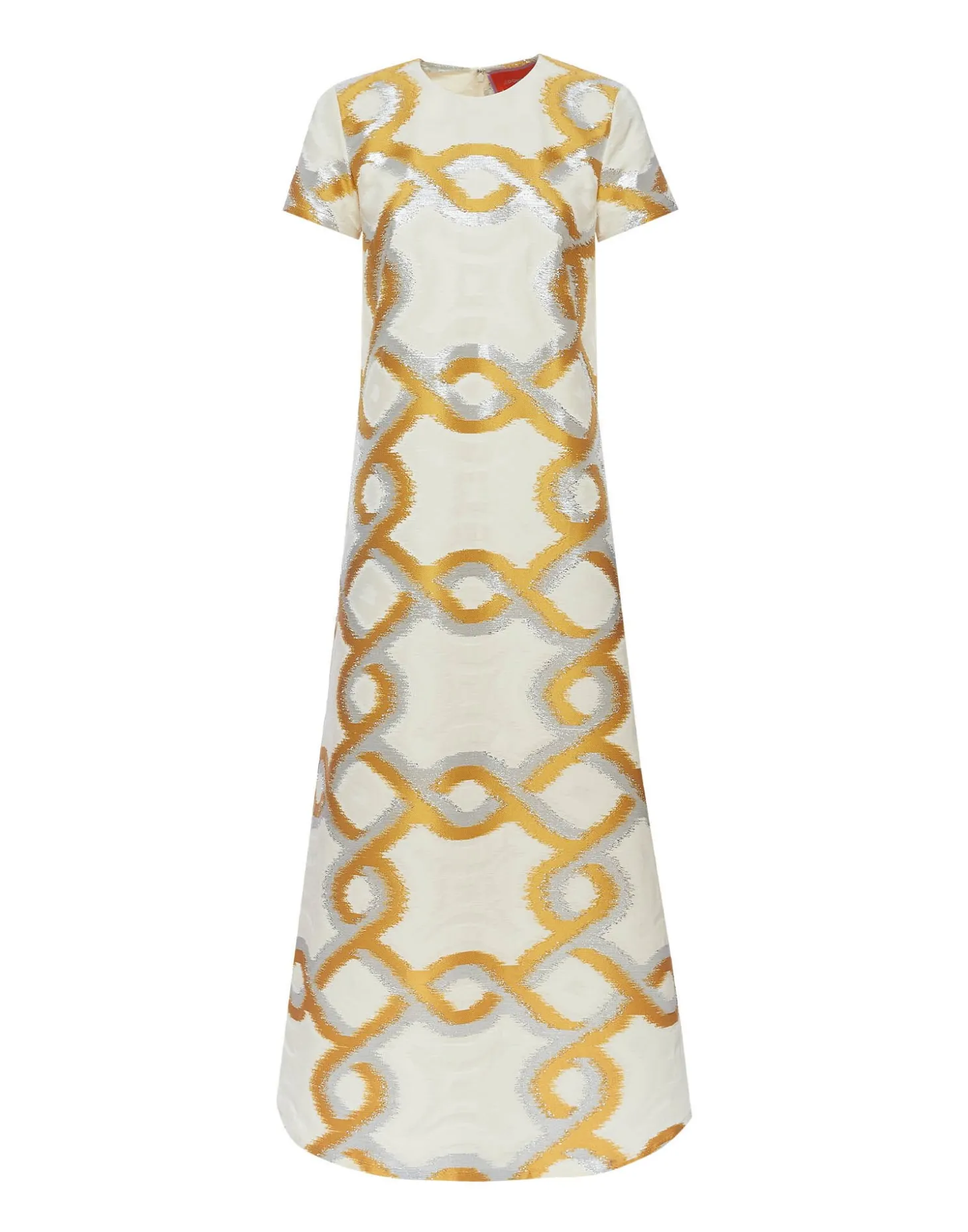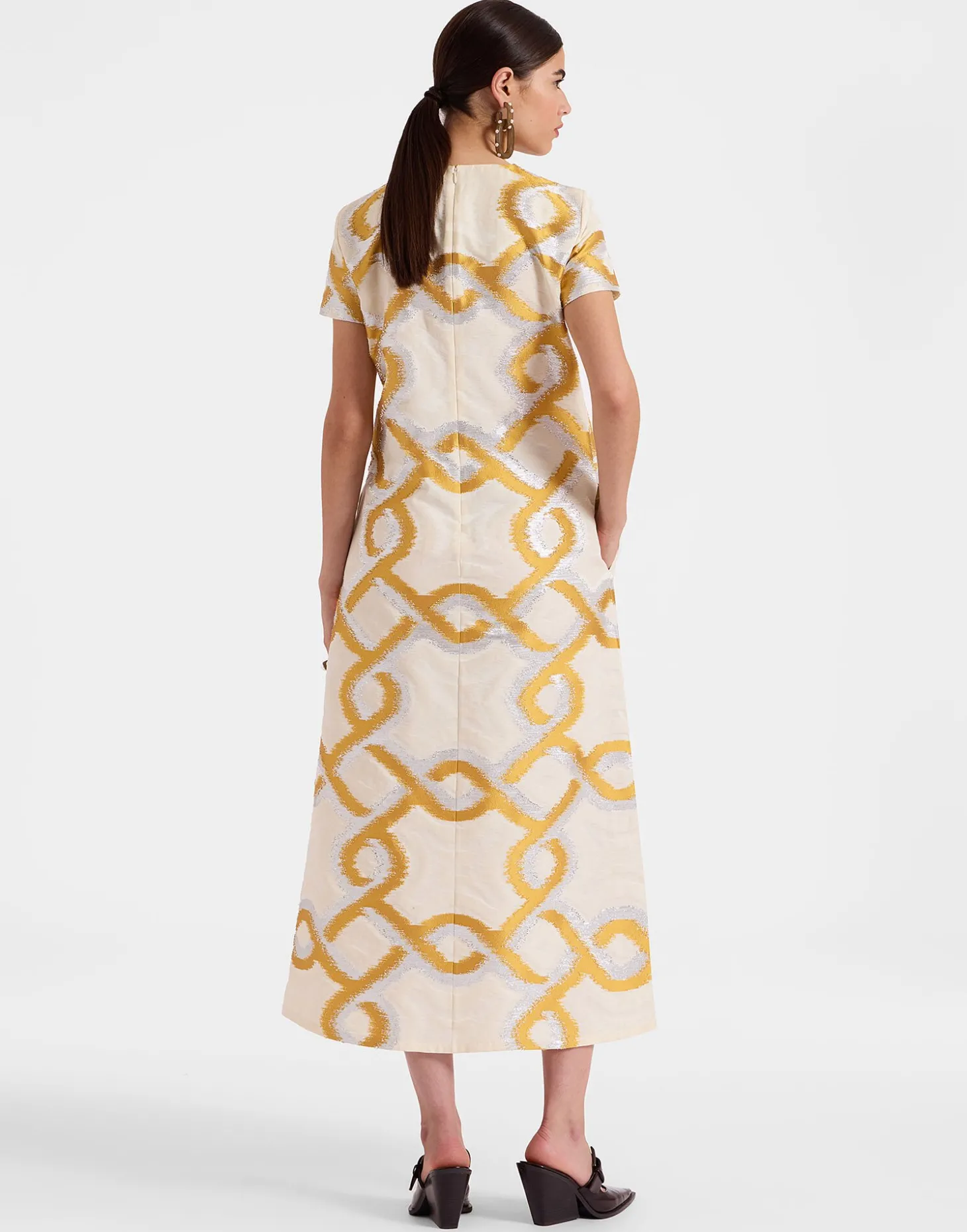 There’s nothing quite like your first love. For us, that’s the Swing Dress, our first silhouette which we’ve reimagined in luxurious textiles and intricate embroideries for our new series of Super Swings! Same classic A-line shape, same slip shoulders, same effortless elegance… Just now with more structure, substance and sparkle for an elevated take on our best-selling dress. This version is crafted in our divine Tackle motif in our elegant jacquard.