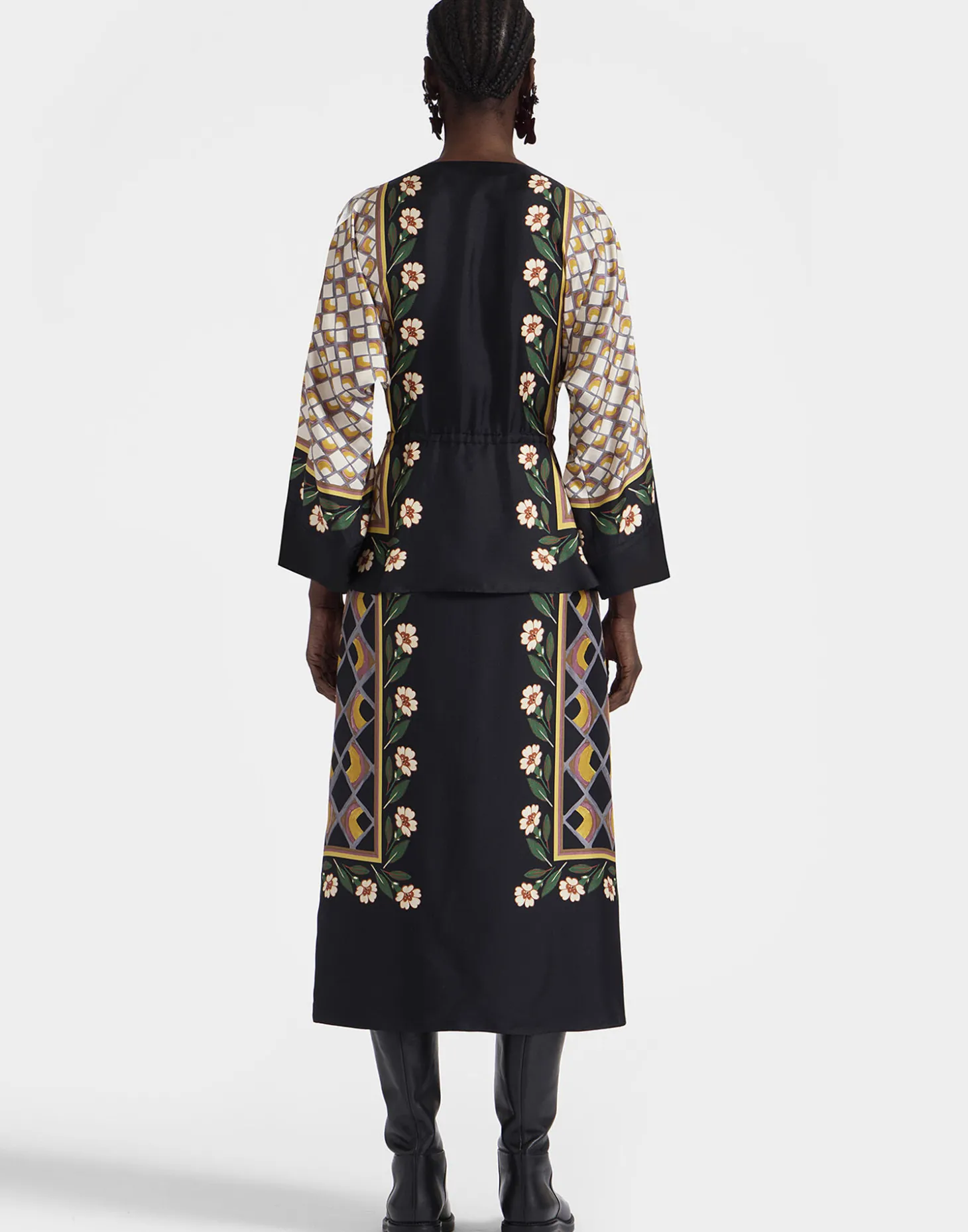 We took one of our most beloved (perhaps, THE most beloved) shirt silhouettes and turned it into a dress! Same chic mandarin collar, same romantic, scarf-like hem, crafted in the finest Italian silk printed on the shores of Lake Como. Wear it with high-tops for a daytime stroll along the lungomare, then throw on some heels for the Portofino palazzo party later.