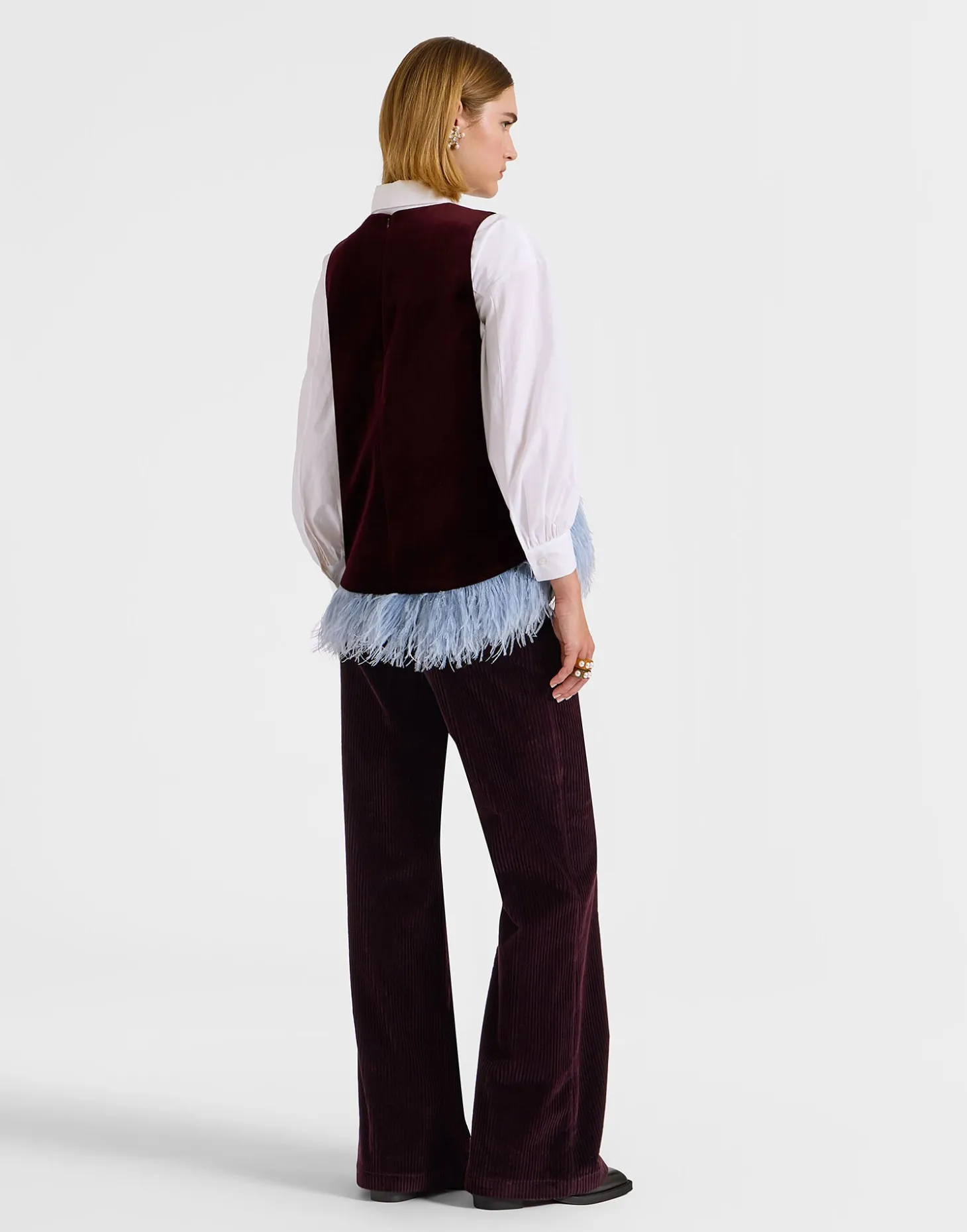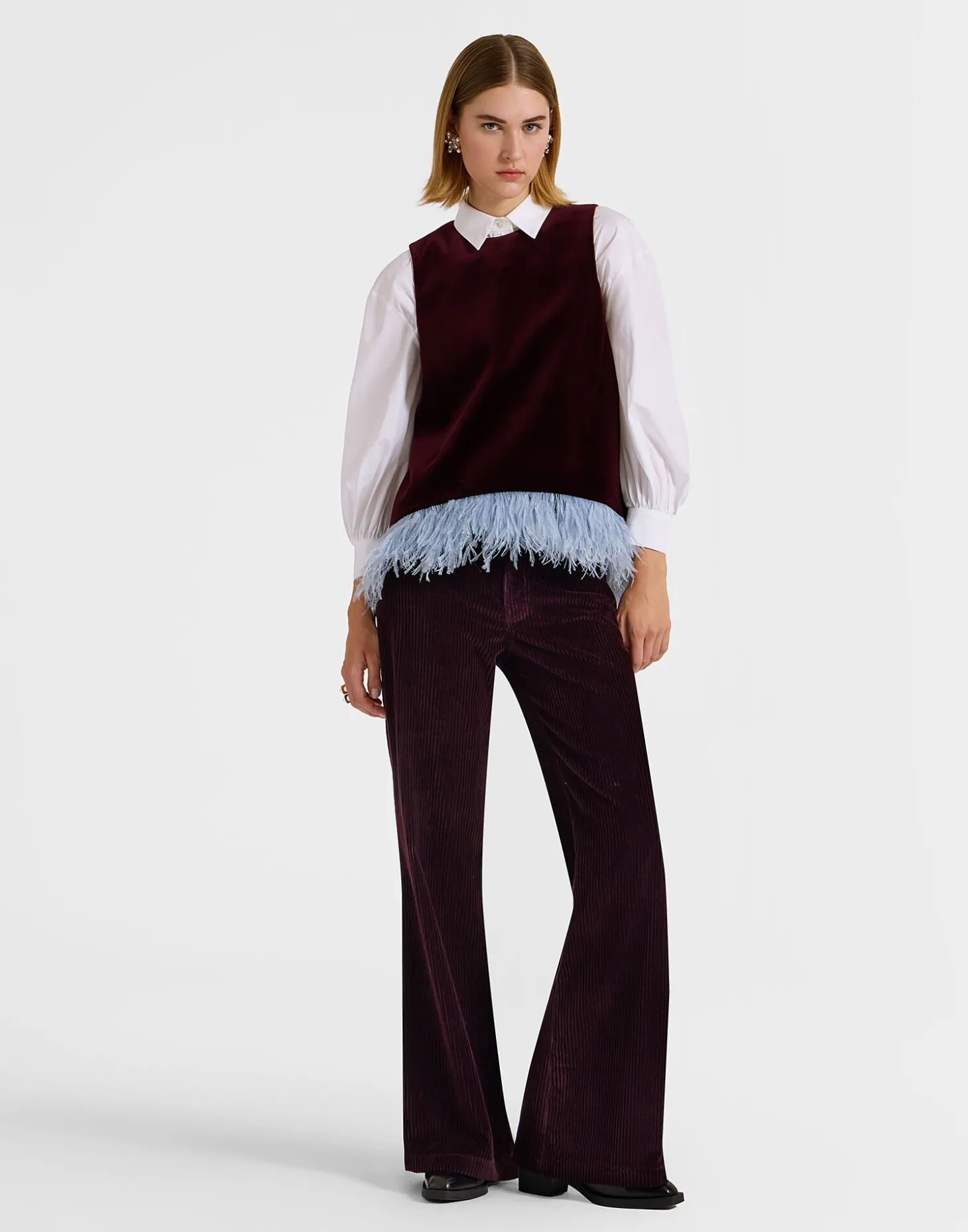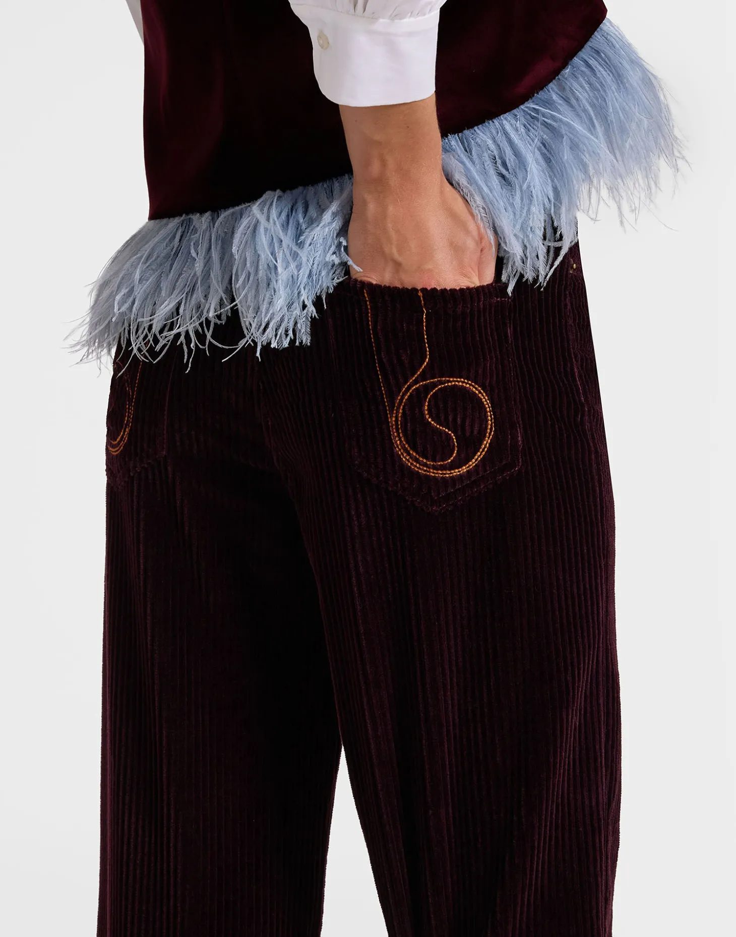 Designed for those looking to elevate the everyday, these are not your average flares. With a super high waist that hugs your curves in all the right places, these are a modern take on a retro classic, cut in a beautiful solid velvet corduroy with embroidered back pockets. Falling straight to the knee before opening up into a wide, romantic bell-bottom, these beauties have a little stretch built in, so you can channel your inner Studio64 without diminishing their booty-boosting shape.