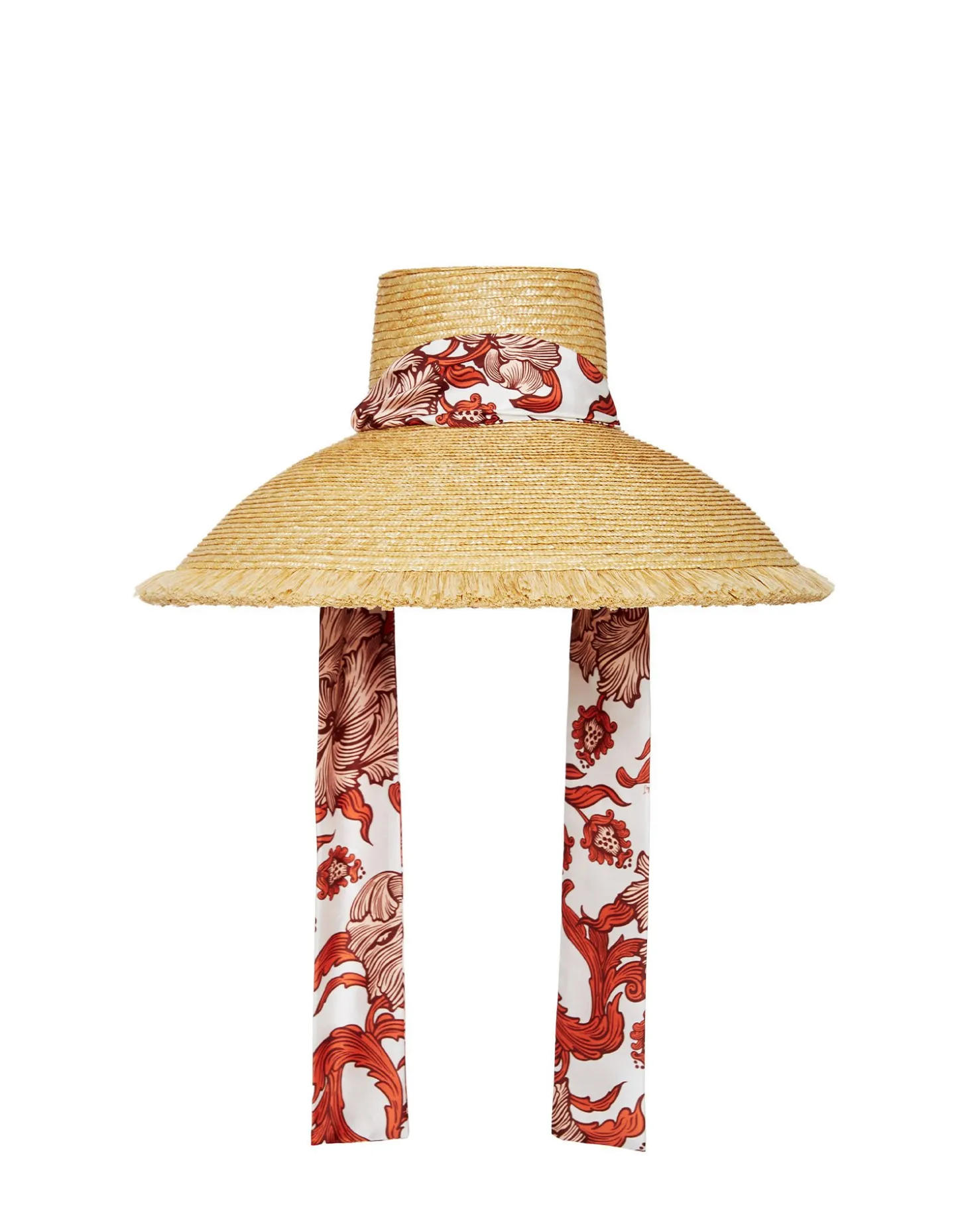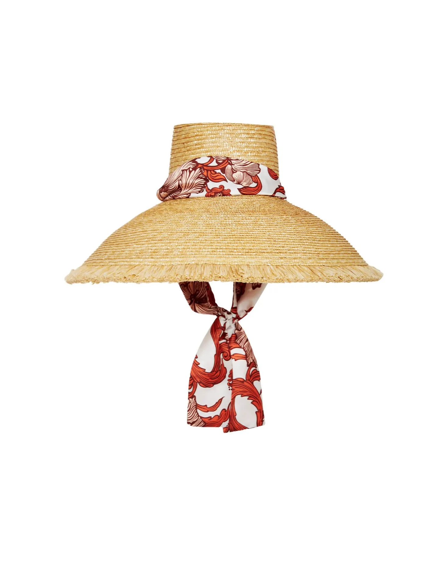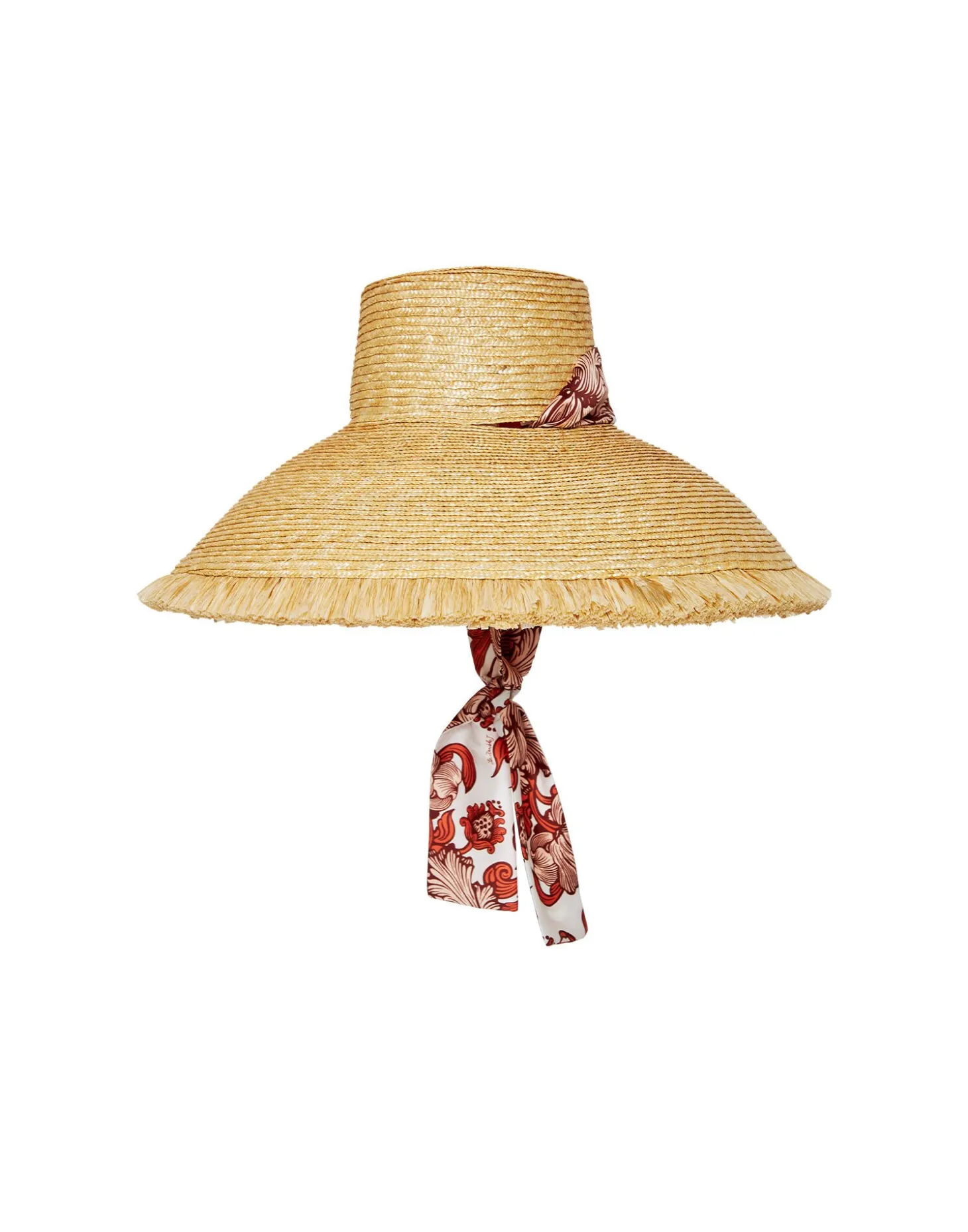 Go big but don’t stay home, Bella – this hat was made to be seen. Crafted from hand-woven raffia, with an uber wide, statement brim, this is a classic made contemporary with a removable printed tie which can be left loose or tied around your chin so it doesn’t fly off while you’re zipping around Lake Como on your Riva.