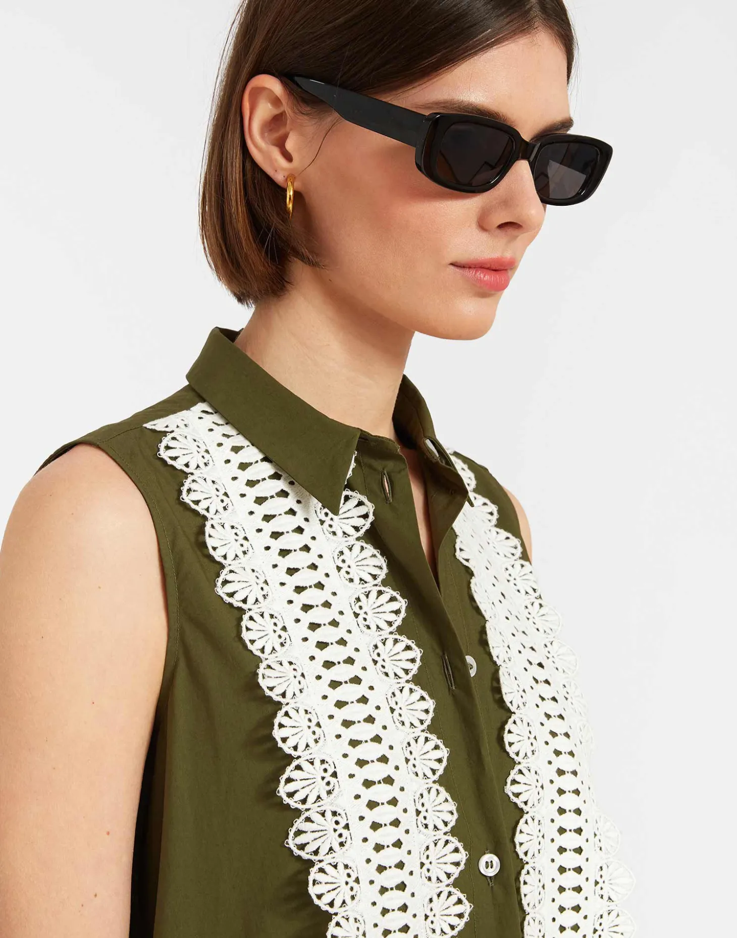 As at home on Perry Street as she is strolling through Palermo, the Tootsie is a summer wardrobe wonder you’ll keep in your closet for eternity. A sleeveless straight silhouette with a classic collar, this is timeless day-to-eveniing attire, whose buttons can be opened up completely for a laid back beach look. Intricate, contrast lace panels down the front make this more than a simple everyday staple – minimalists can opt for the colorblocked version while more maximalist dressers can go for the radiant Reef print option, both in crisp 100% Italian cotton.