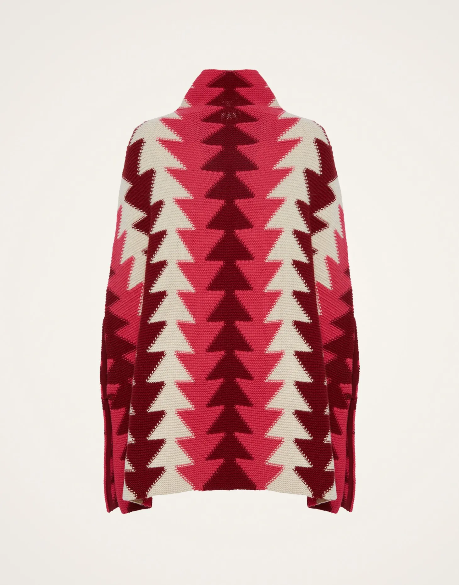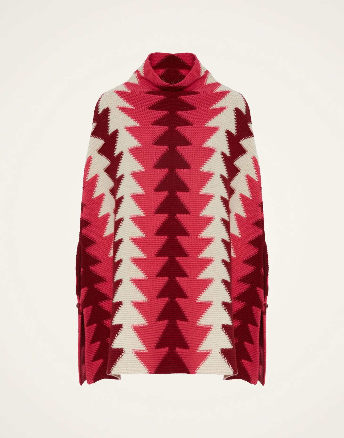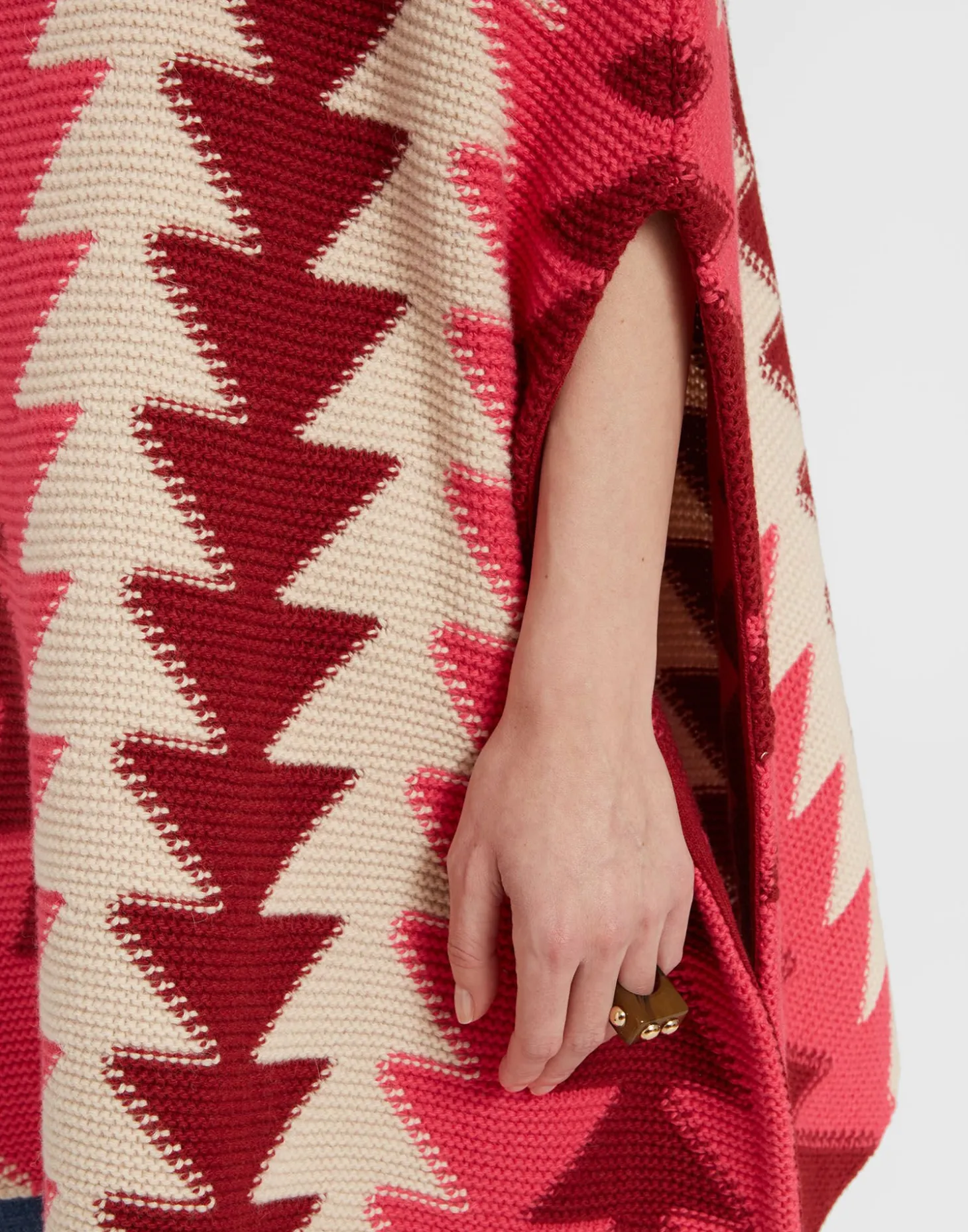 We’re calling it – this Trine Cape is the perfect transitional style savior. Crafted from a sumptuous Italian wool and alpaca blend, this piece hits all the high notes (and just the right height on the thigh). With an elegant high neck and deep romantic slits up the arm, the silhouette is sleek and simple, to let the rich intarsia embroidery really shine. Pair her with our over-the-knee boots for a sassy Seventies look, or over tights and high-tops for a sophisticated spin on street-chic.