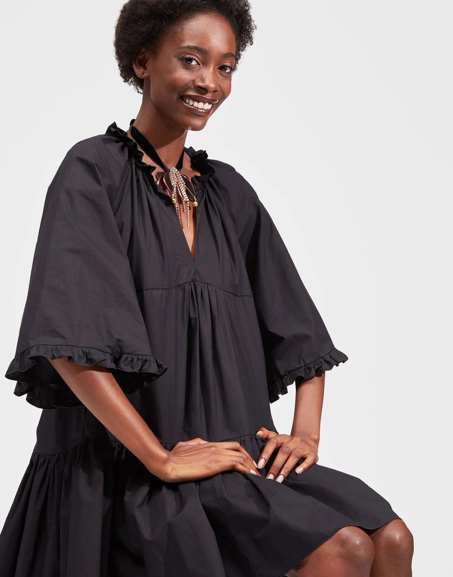 The eye-catching floral motif of this Tulip Necklace is inspired by J.J.’ s research into Transylvanian patterns in the gallerist and collector Miki Von Bartha’s archives. Traditionally found painted in homes and on furniture, this tulip has been given the La DoubleJ treatment with strings of diamond-like glass crystals, little baubles and a modern velvet ribbon that you can adjust to wear as high or low as you like. Especially for you magpies, the rose-tinted brass is polished to a mirror shine.